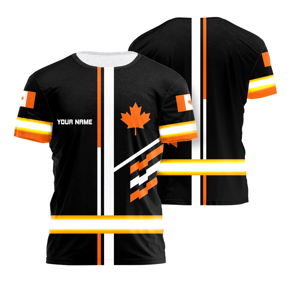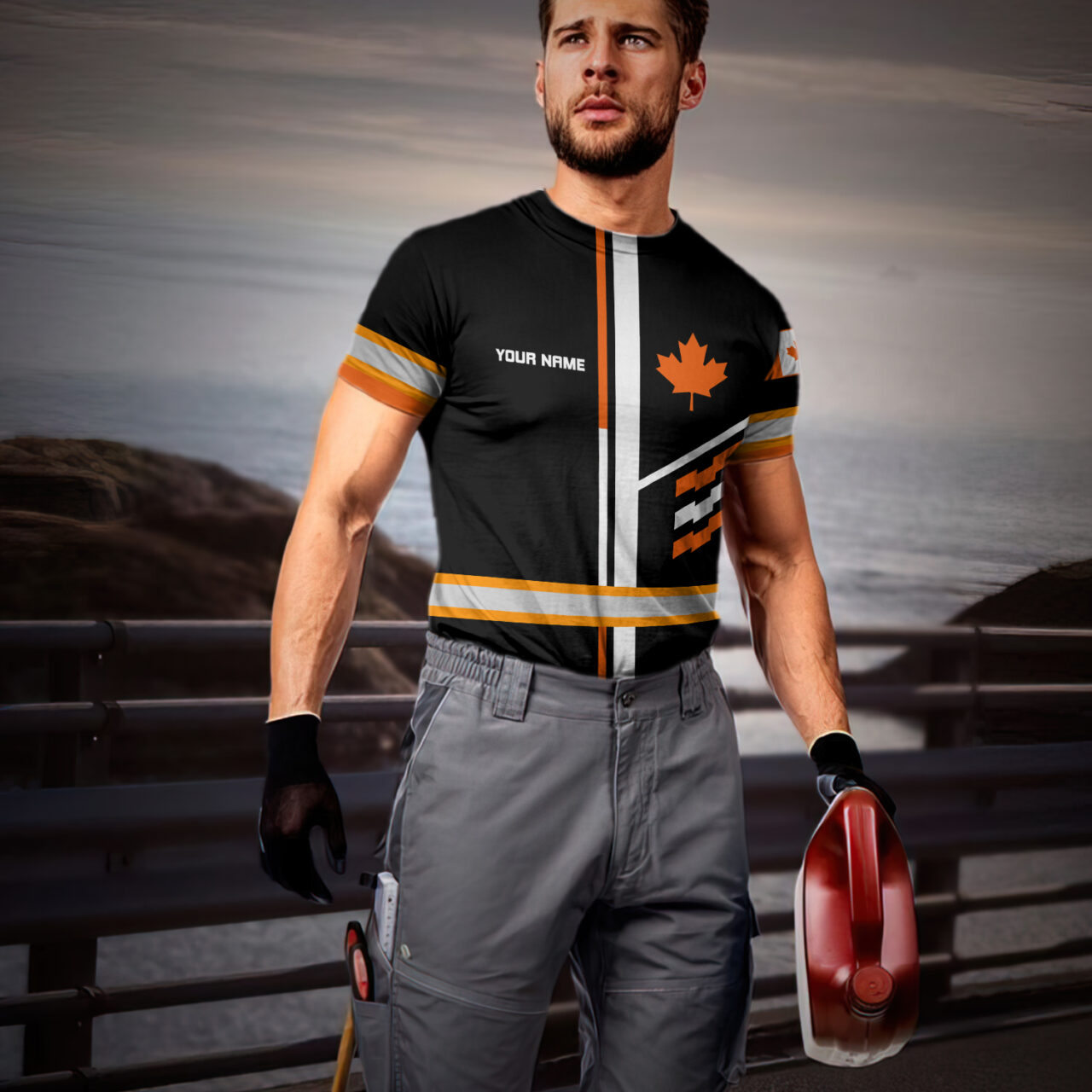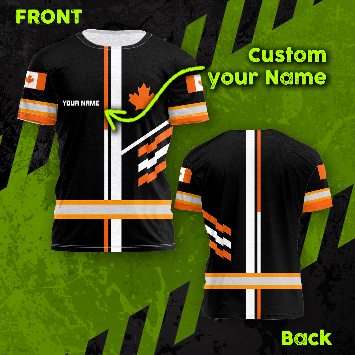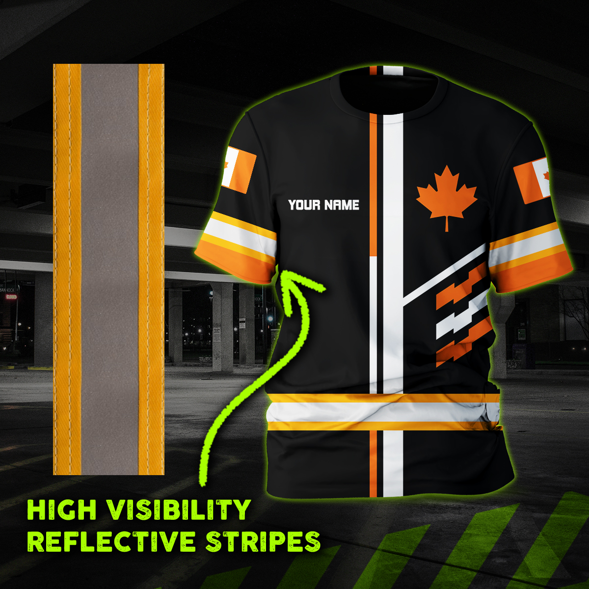 Hi Vis Shirt Reflective Tapes Orange Neon CA Flag Custom Name Safety Workwear For Workers, Runners, Cyclists