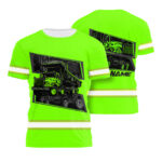 Hi Vis Shirt Reflective Tapes Green Neon Dump Truck Custom Name Safety Workwear For Workers, Truckers, Operator, Cyclists, Patriotic