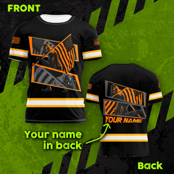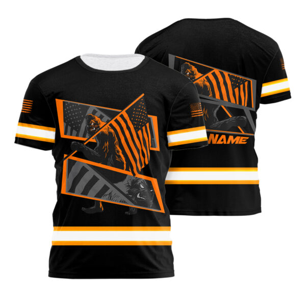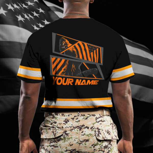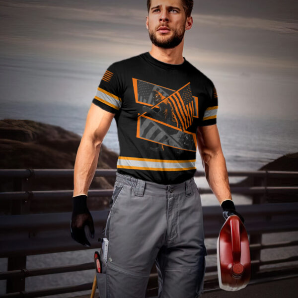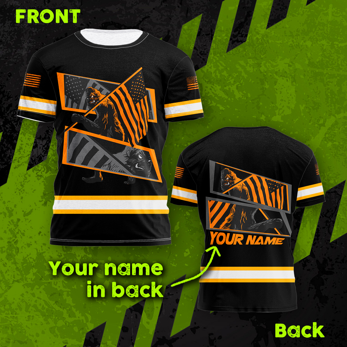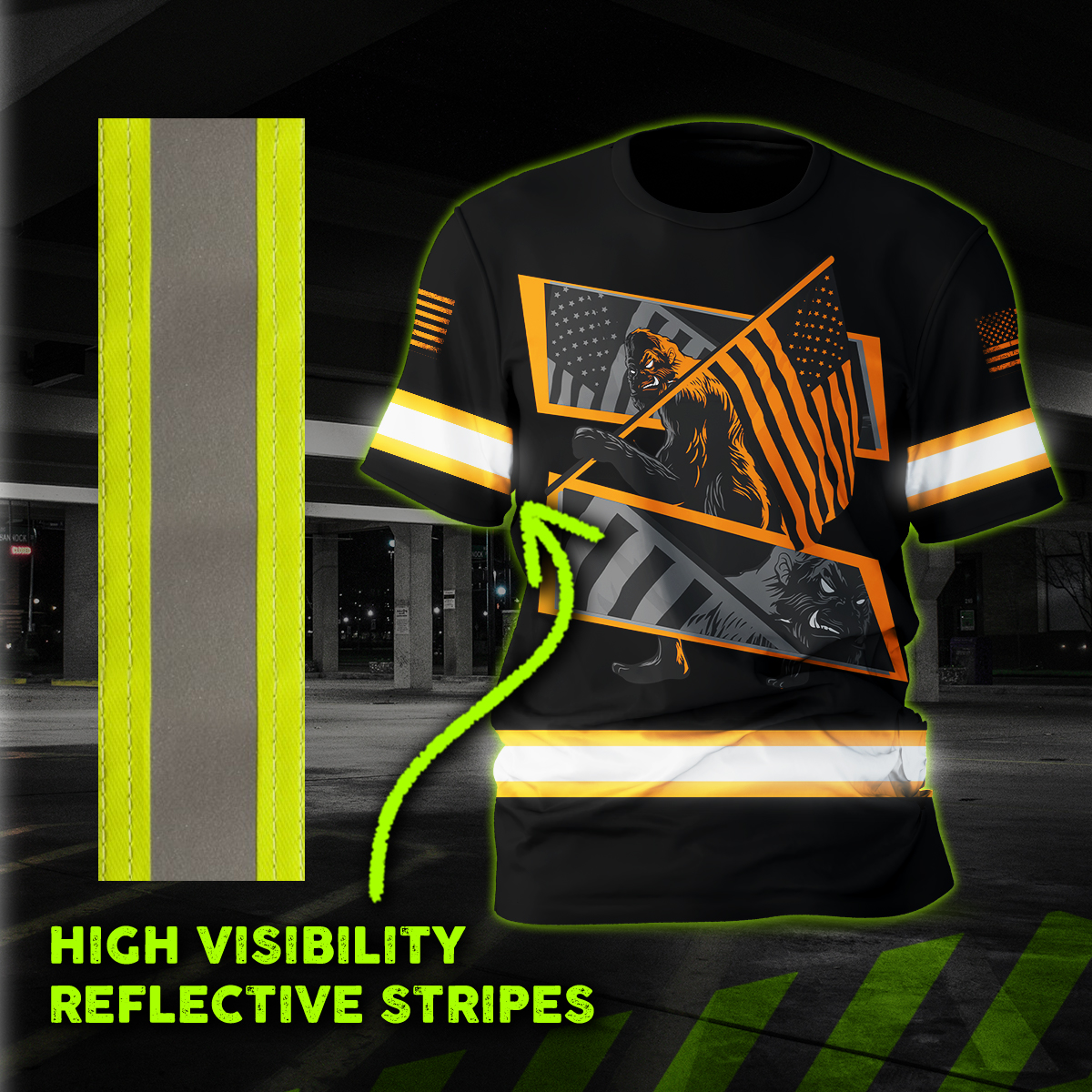 Hi Vis Shirt Reflective Tapes Orange Neon Outdoor Gorillas US Flag Custom Name Safety Workwear For Workers, Operator, Cyclists, Patriotic