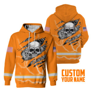 Hi Vis Hoodie Reflective Skull Orange Neon US Flag Safety Workwear