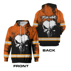 Hi Vis Hoodie Reflective Tapes Orange Skull Custom Name Safety