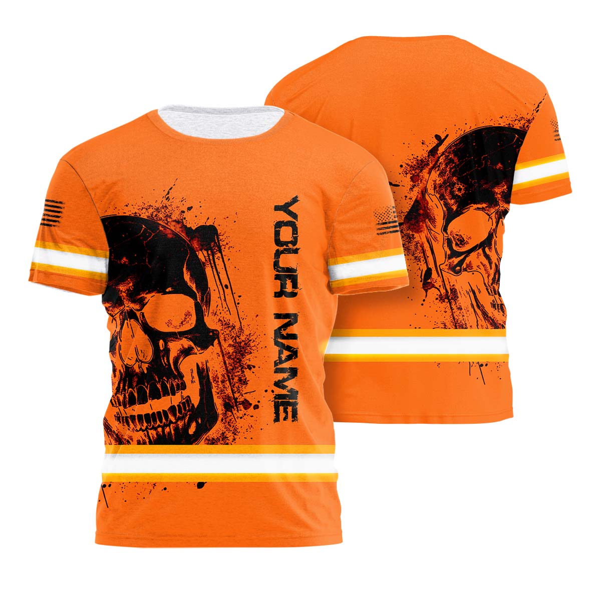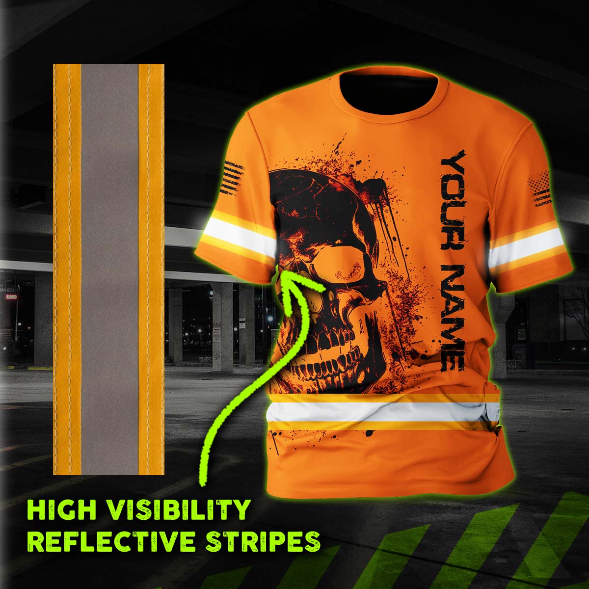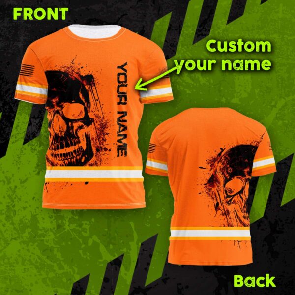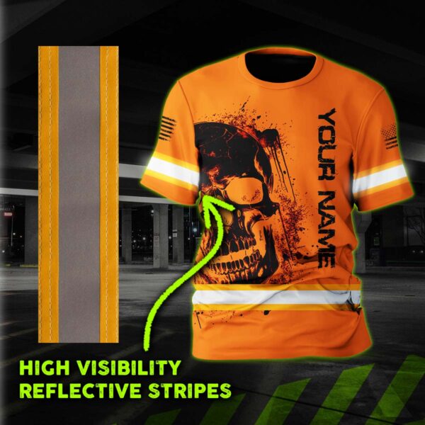 Hi Vis Shirt Reflective Tapes Orange Neon Skull And Flag Custom Name