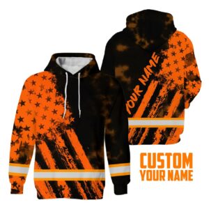 Hi Vis Hoodie Reflective Tapes Orange Neon And Black US Flag