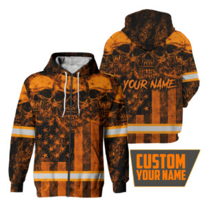 Hi Vis Hoodie Reflective Orange Neon Strong Skull US Flag Custom Name