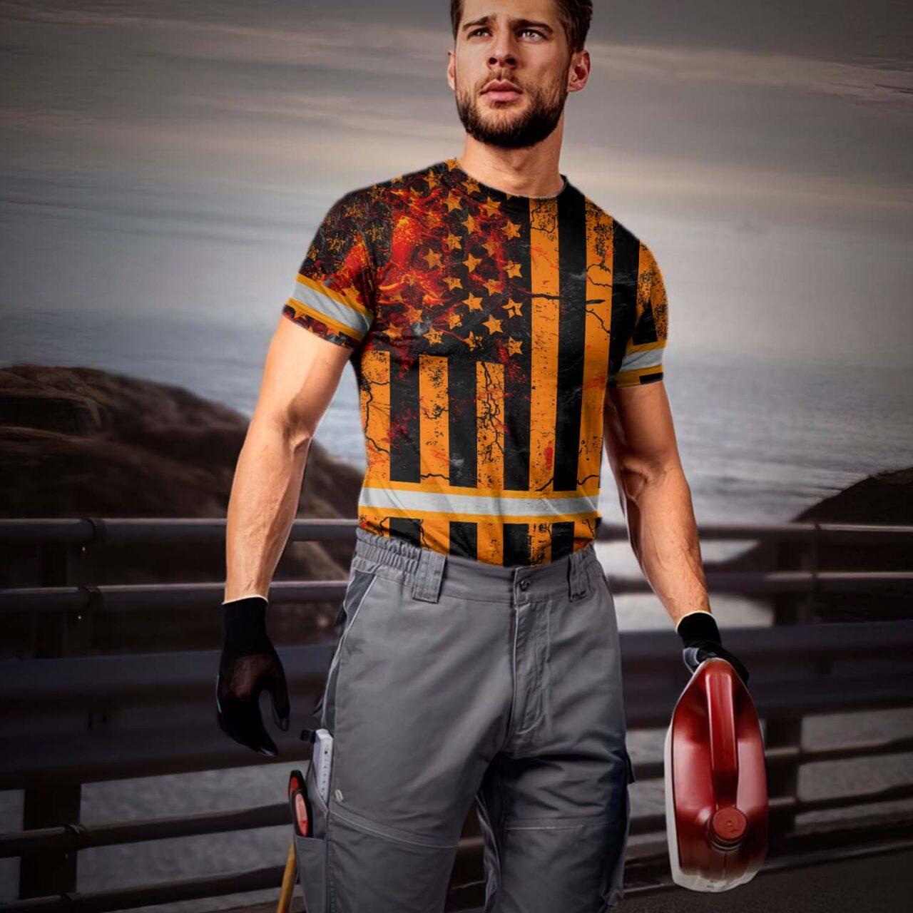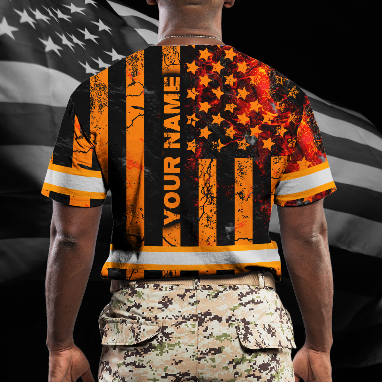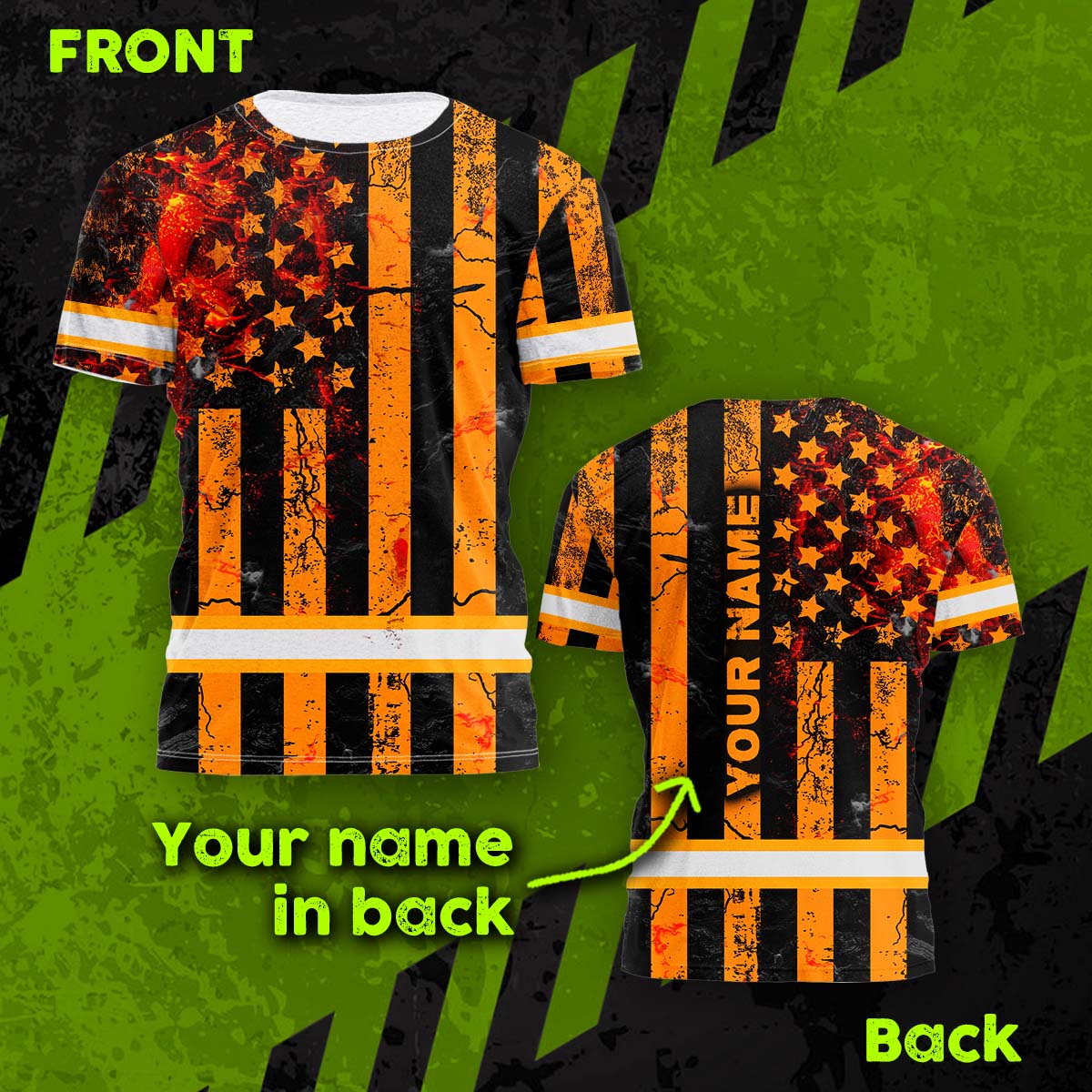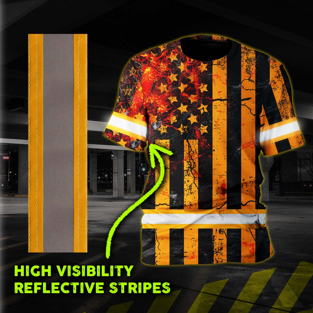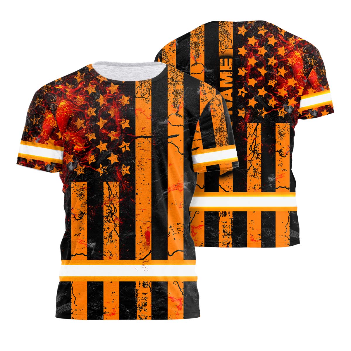 Hi Vis Shirt Reflective Tapes Orange Neon US Flag Fire Custom Name
