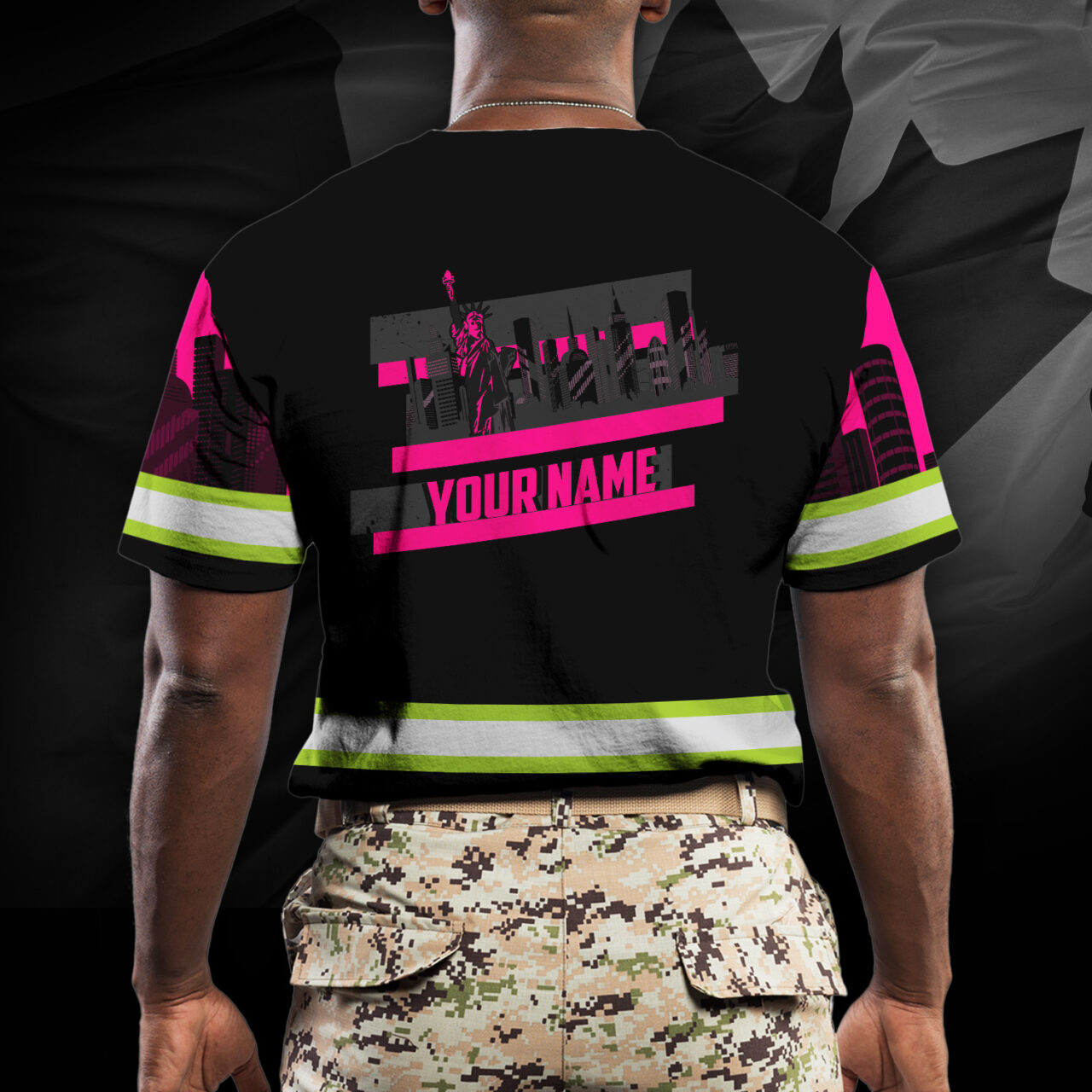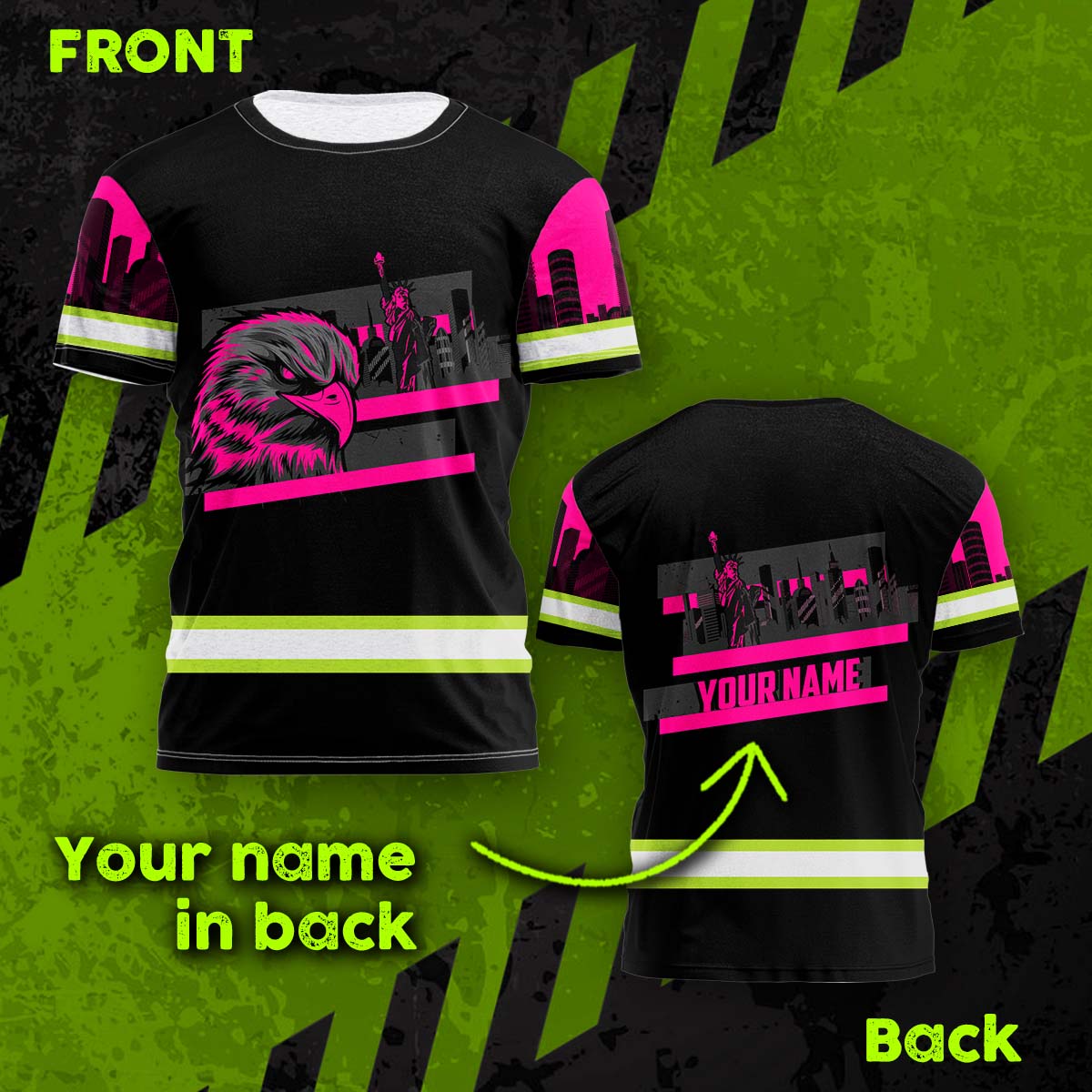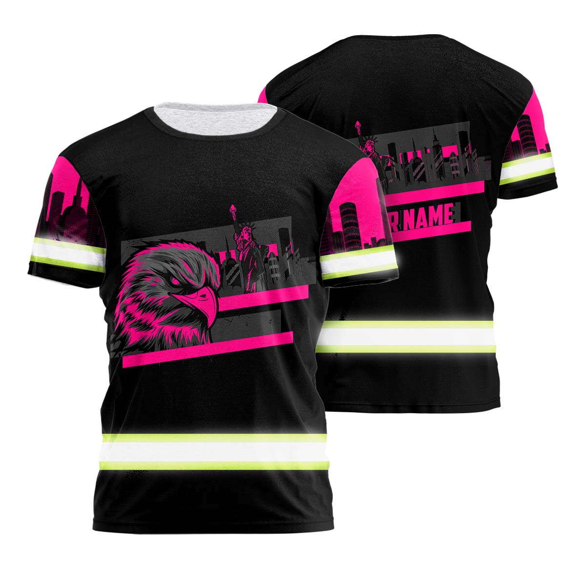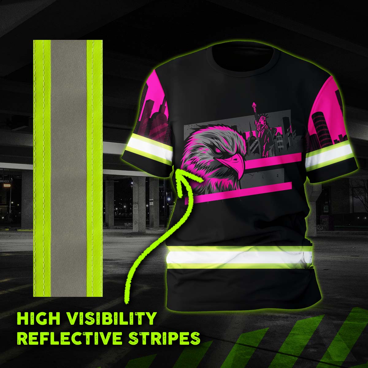 Hi Vis Shirt Reflective Tapes Pink Eagle Custom Name Safety Workwear For Patriotic, Workers, Runners, Cyclists