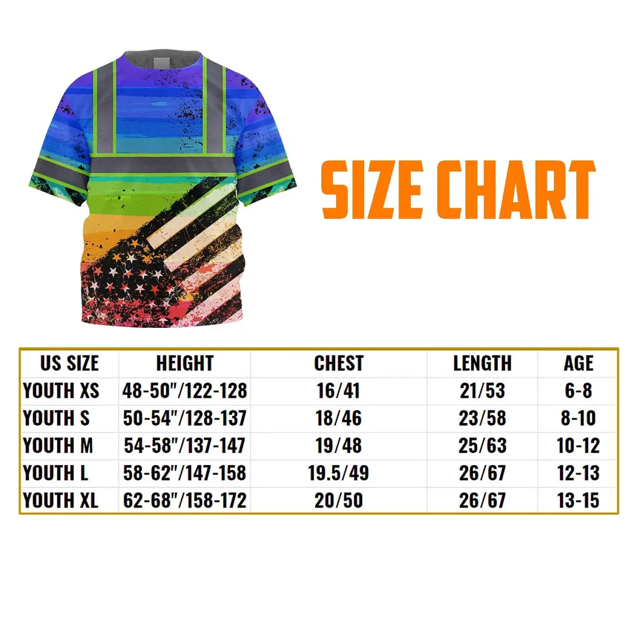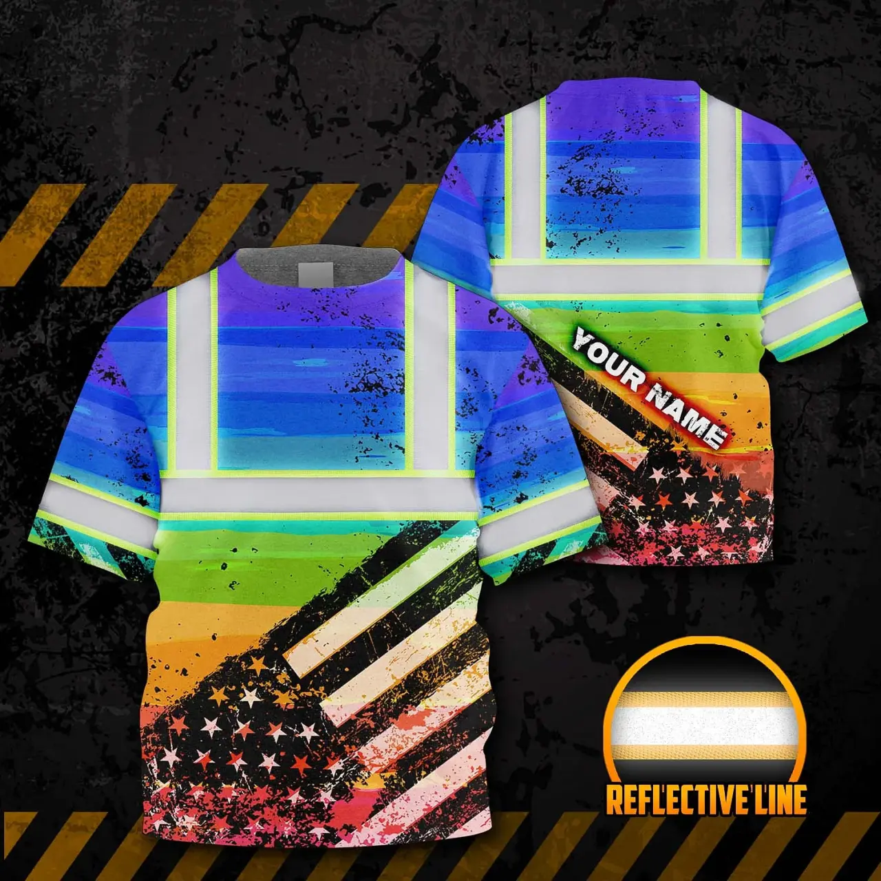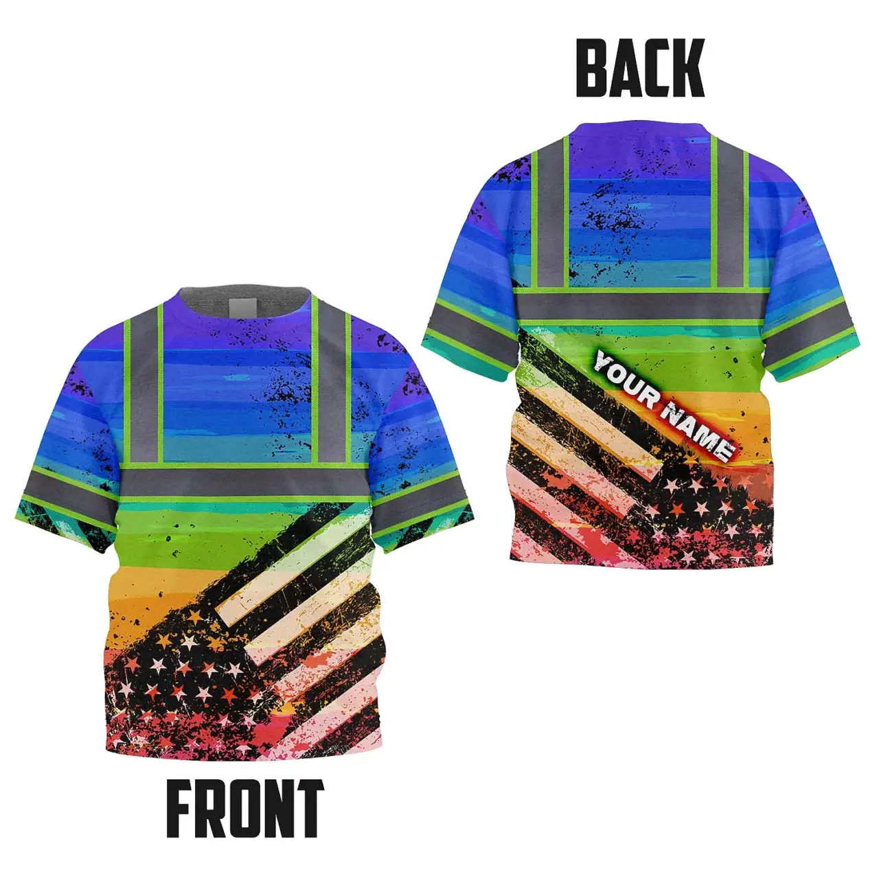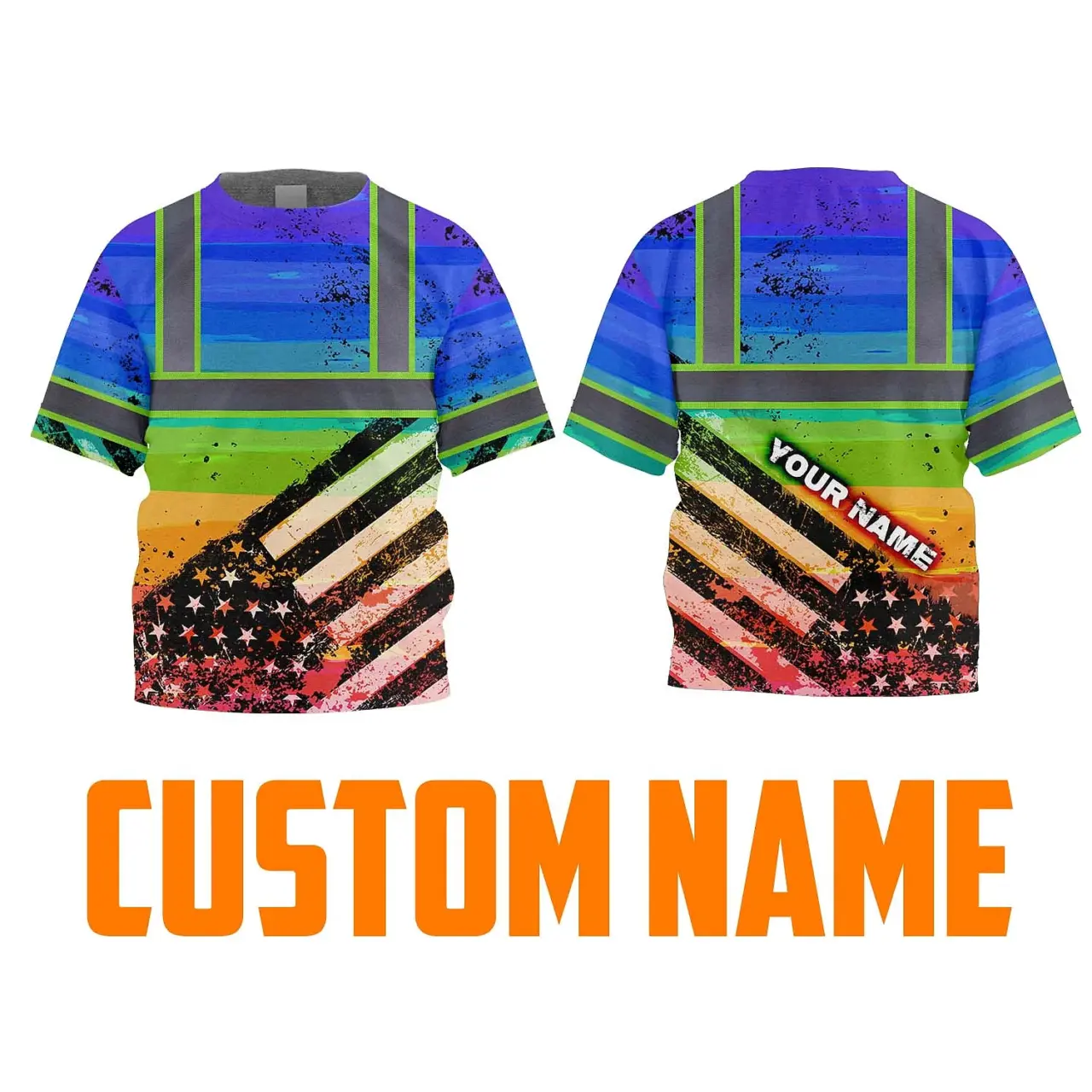 Hi Vis Shirt Reflective Tapes Rainbow US Flag Paint Custom Name For Kids