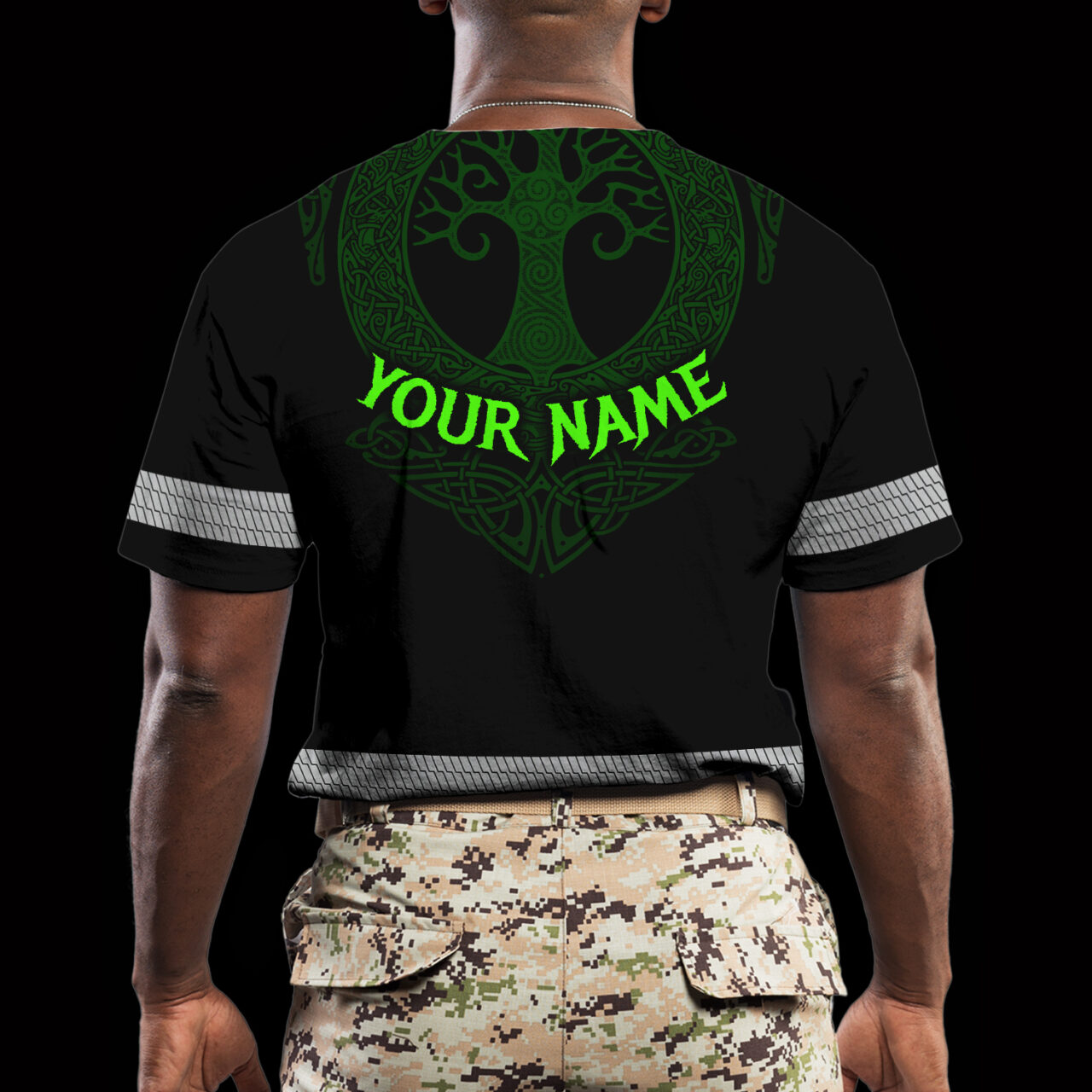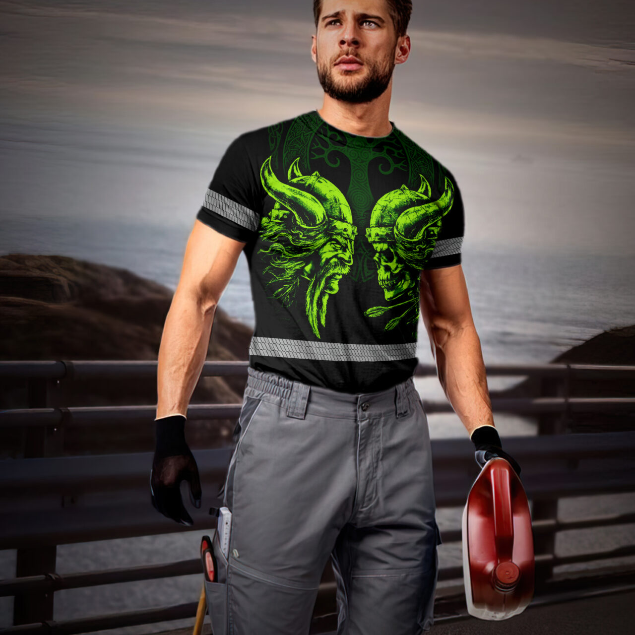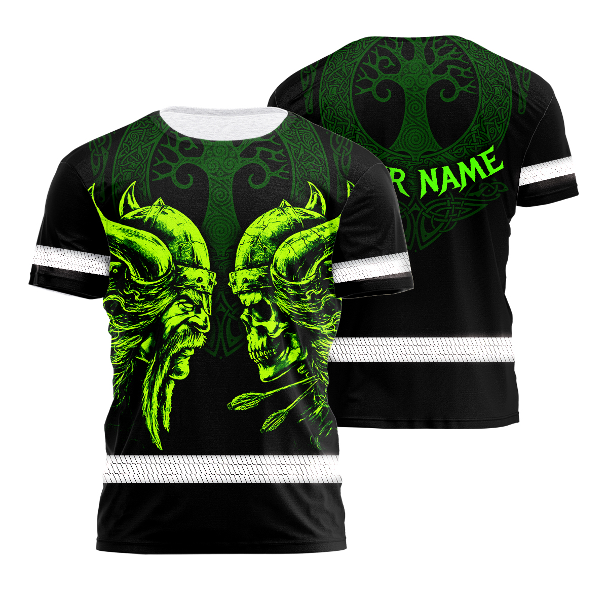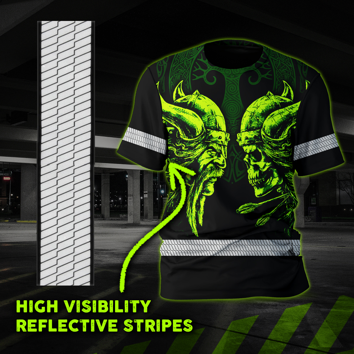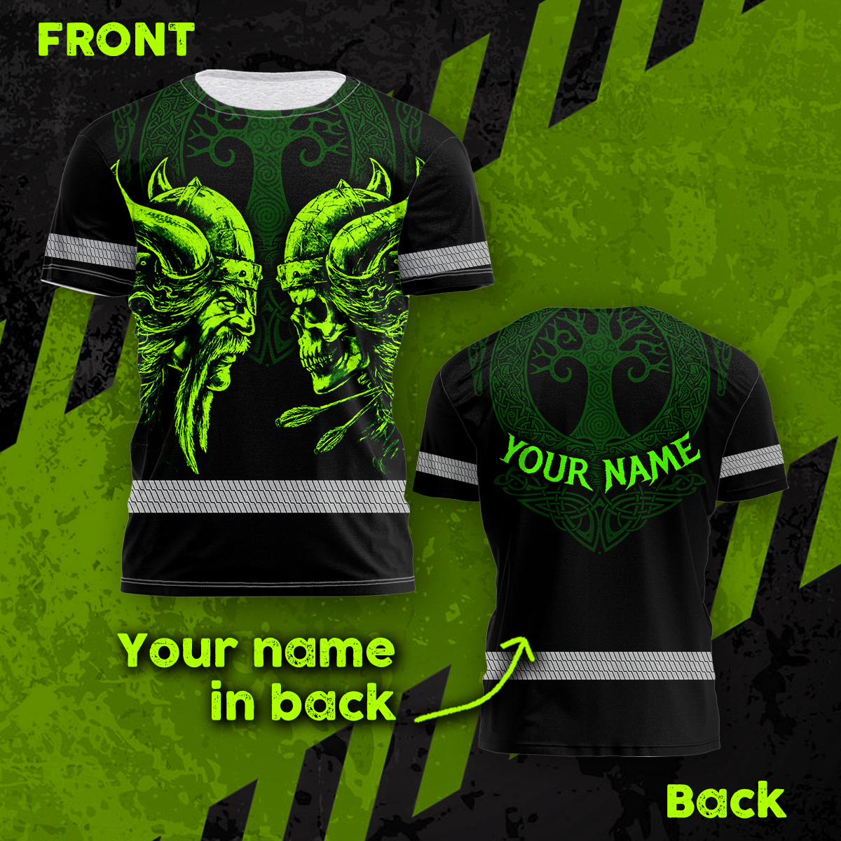 Hi Vis Shirt Reflective Tapes Raven Viking Symbol Green Neon Custom Name Safety Workwear For Workers, Runners, Cyclists