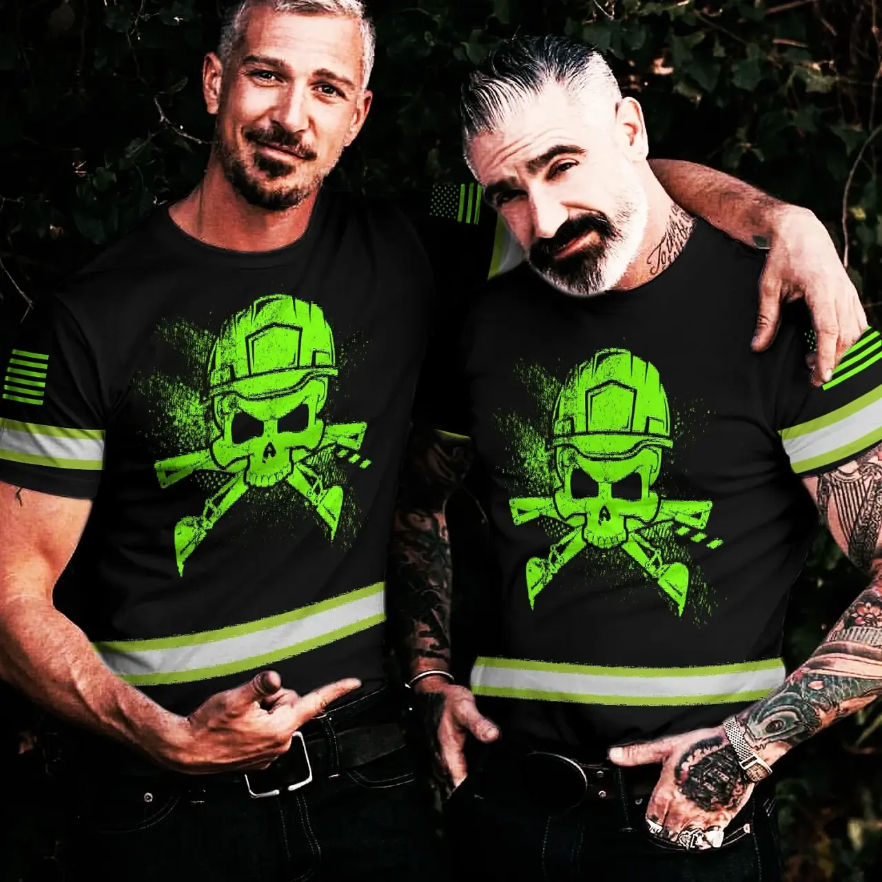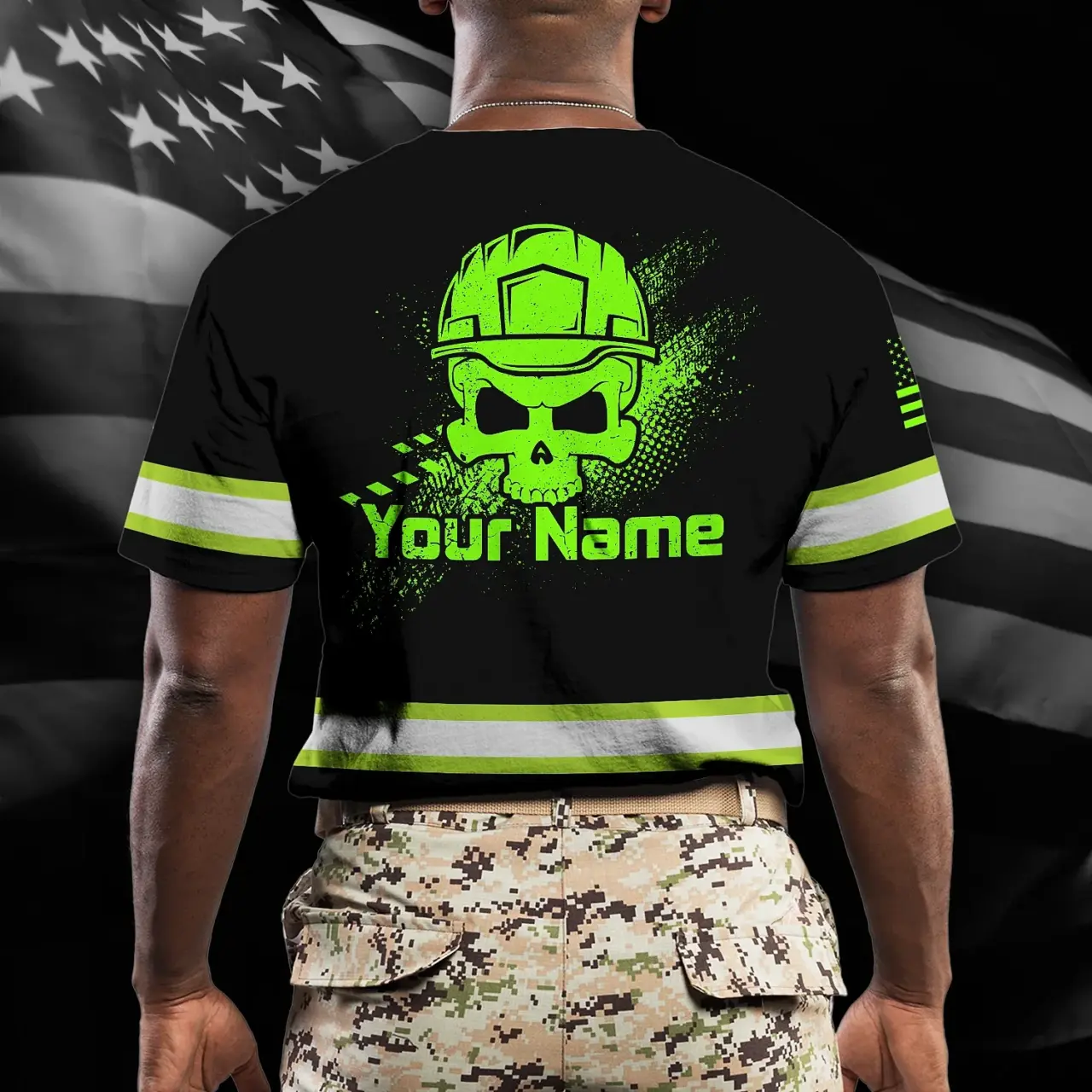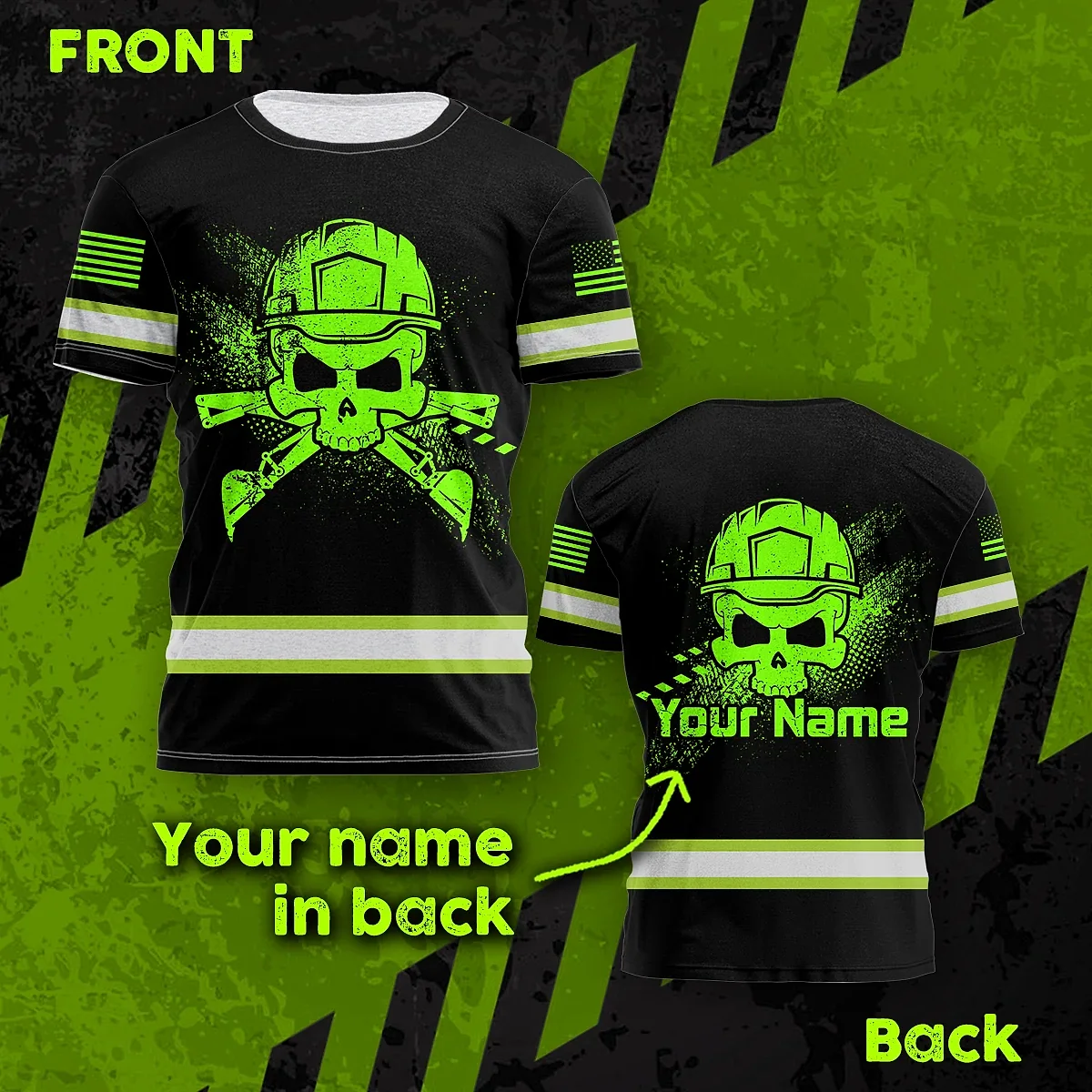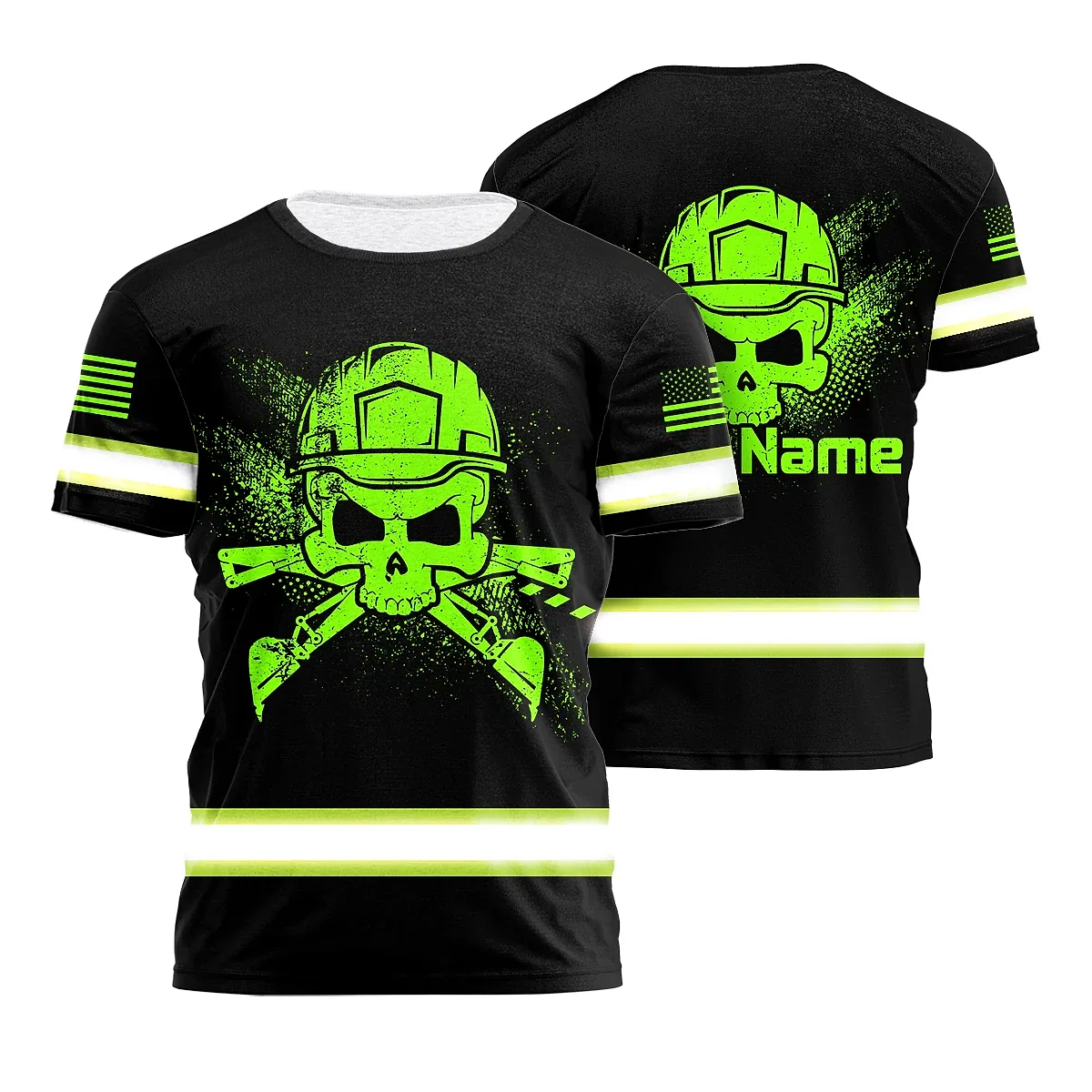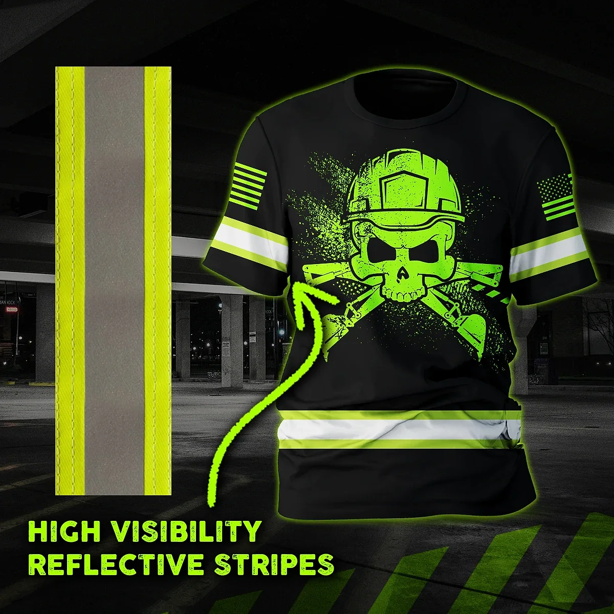 Hi Vis Shirt Reflective Tapes Skull Excavator Custom Name Safety Workwear For Workers, Truckers, Operators