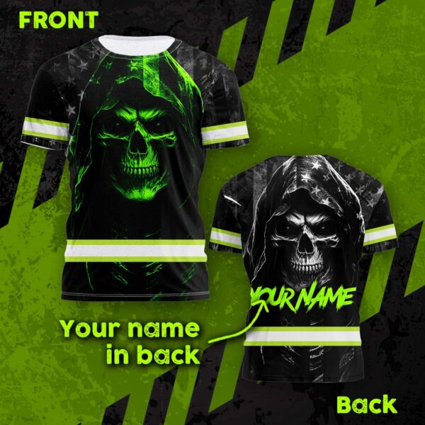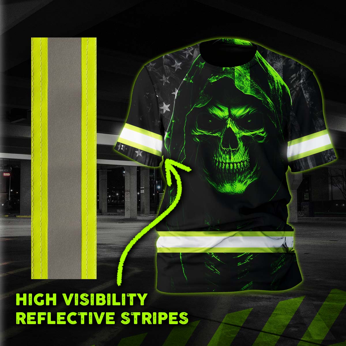Hi Vis Shirt Reflective Tapes Mint Neon US Flag Skull Custom Name