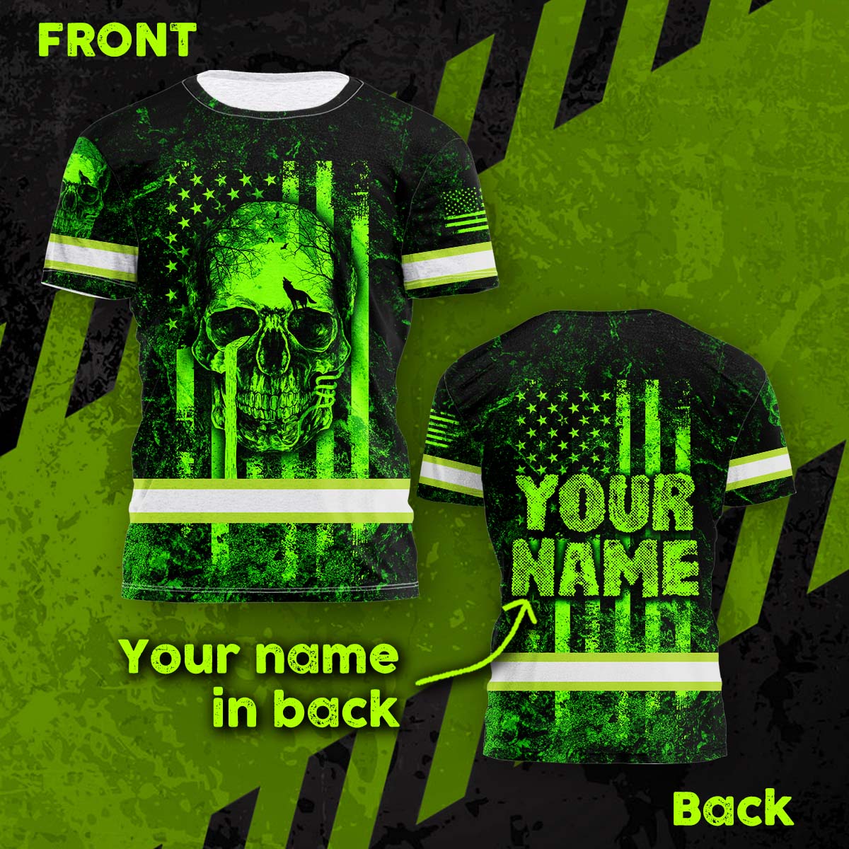 Hi Vis Shirt Reflective Green Neon Ripping Off Skull Custom Name