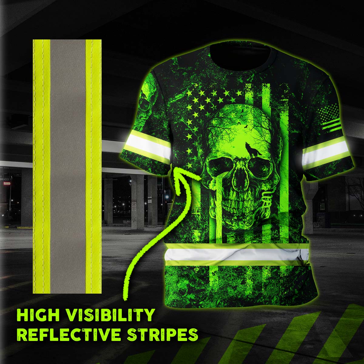 Hi Vis Shirt Reflective Tapes US Flag Skull Custom Name Safety Workwear
