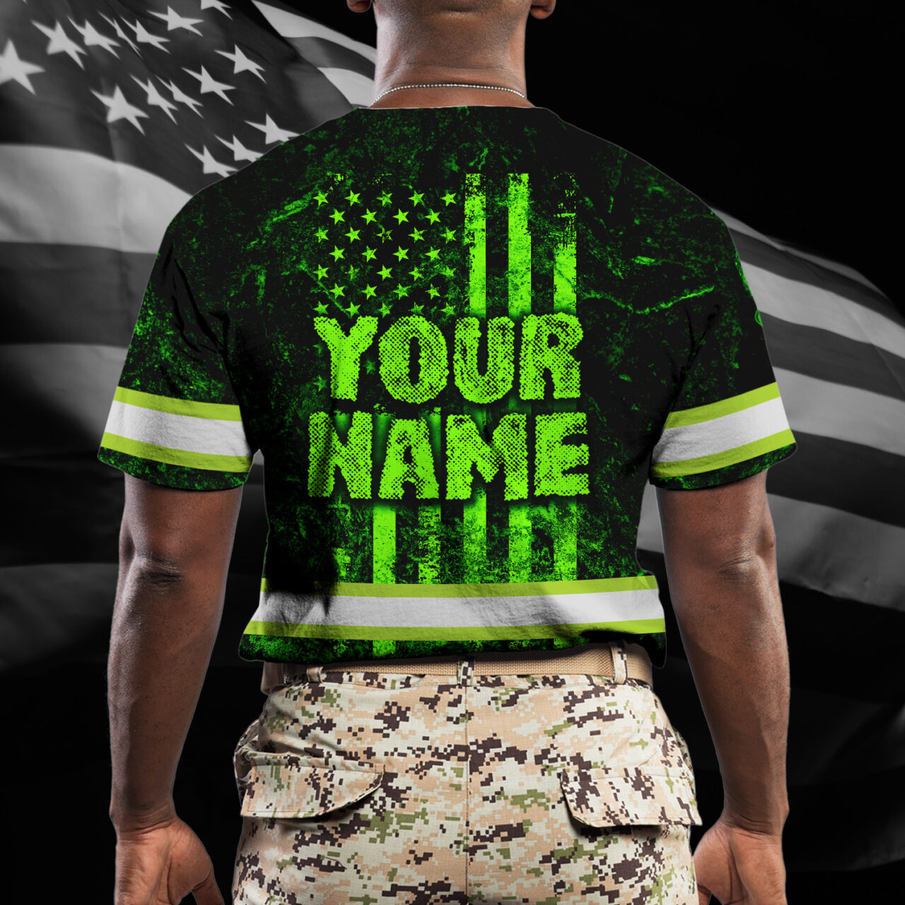 Hi Vis Reflective Green American Flag Custom Name Hoodie Safety Workwear
