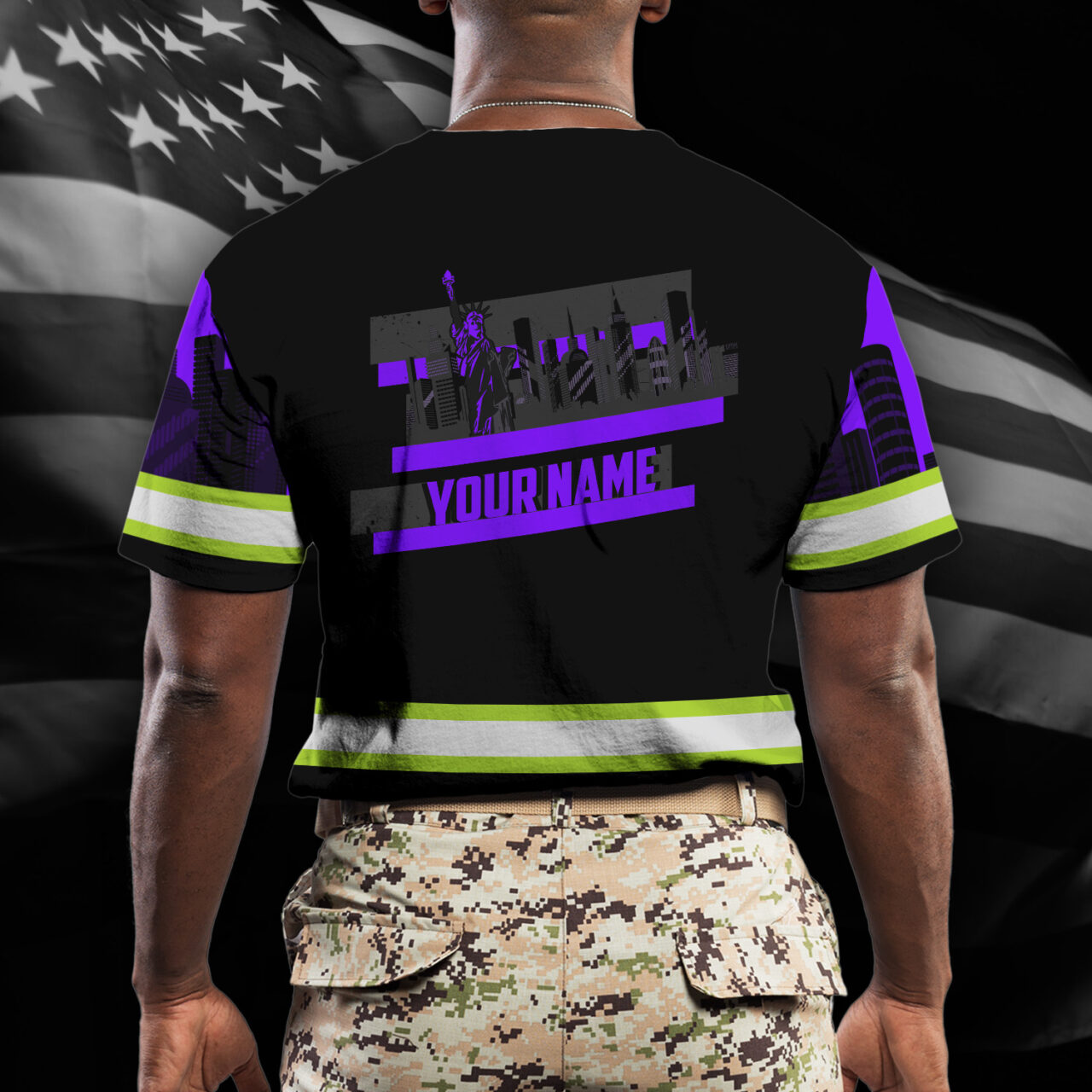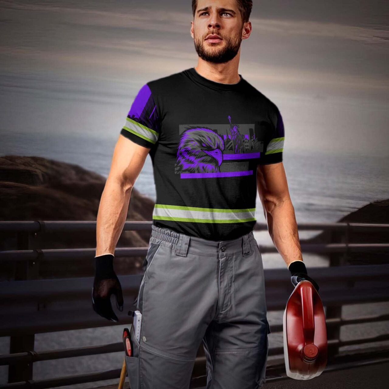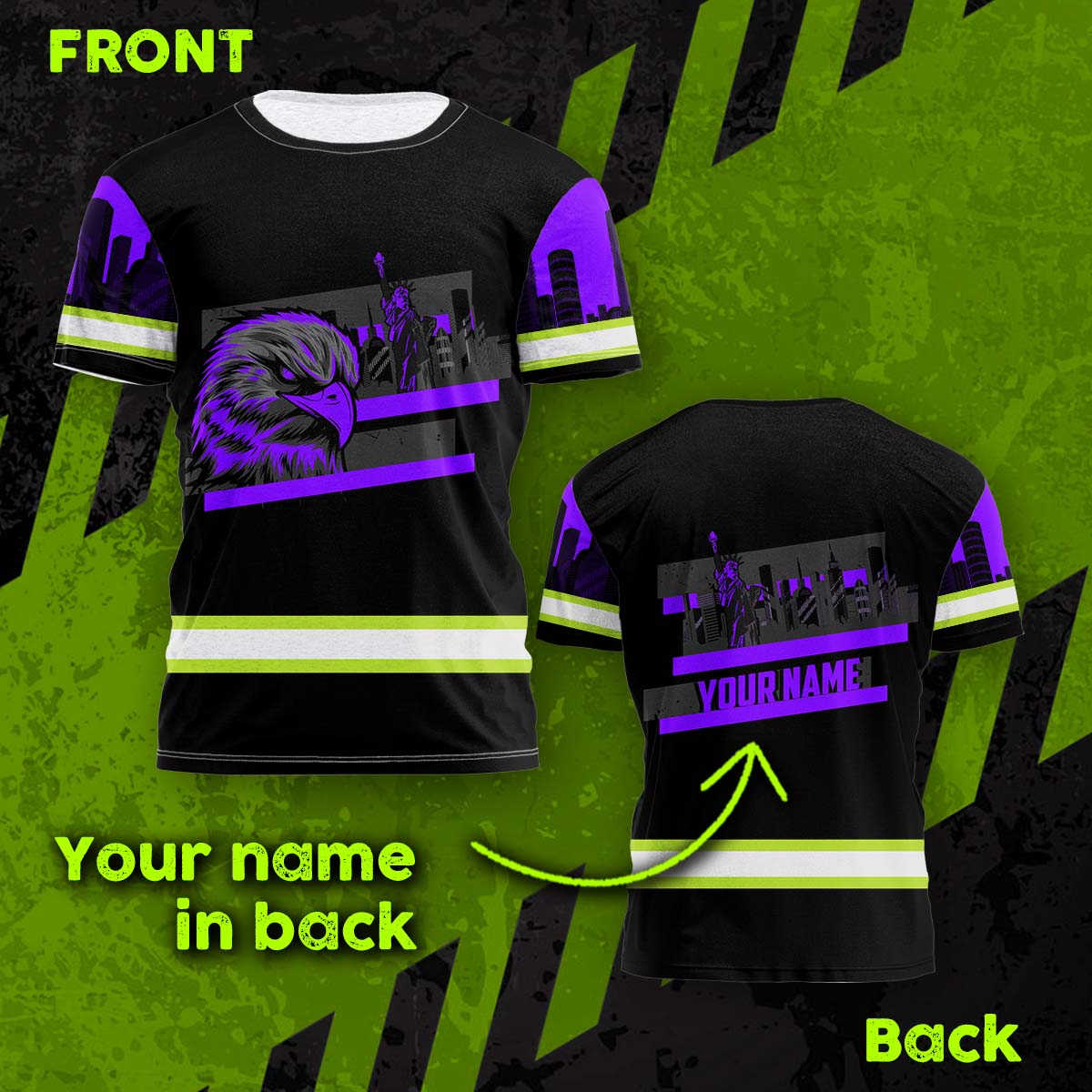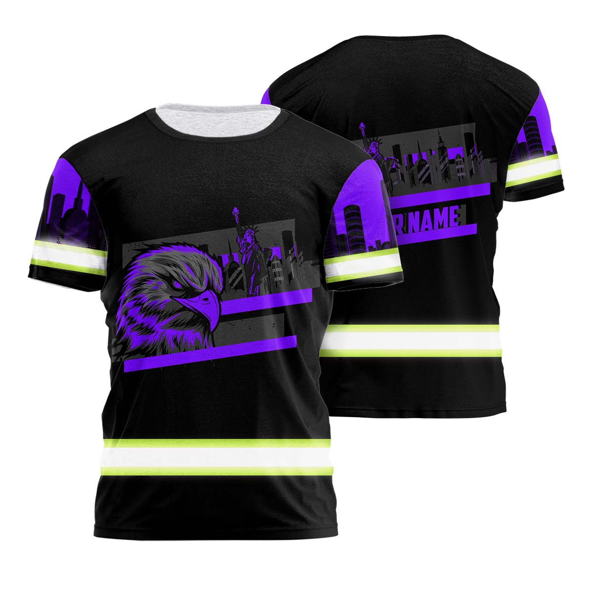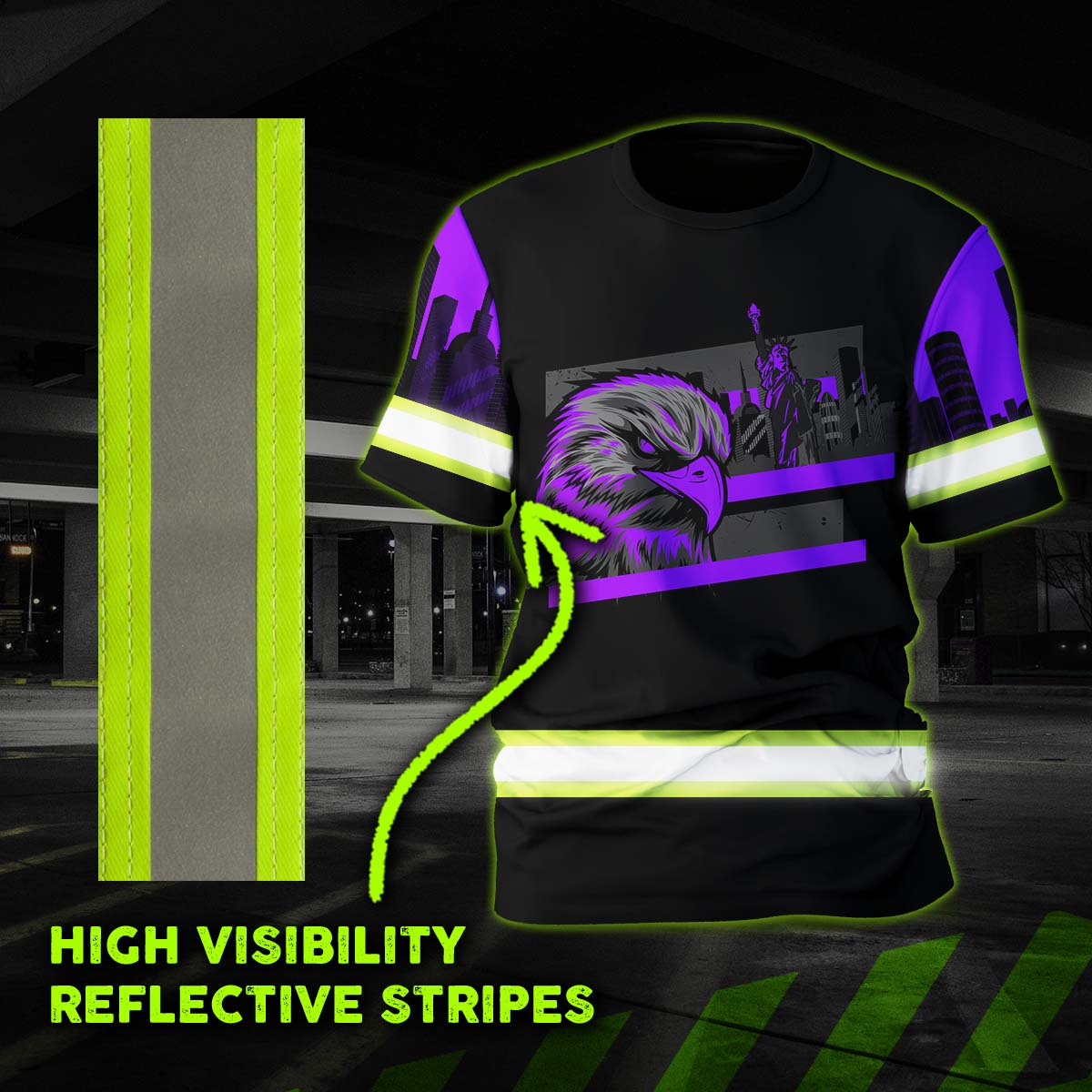 Hi Vis Shirt Reflective Tapes Violet Eagle Custom Name Safety Workwear For Patriotic, Workers, Runners, Cyclists