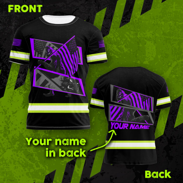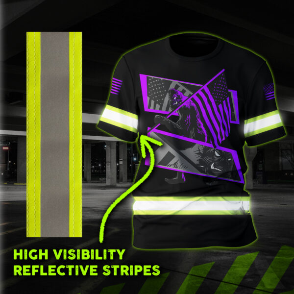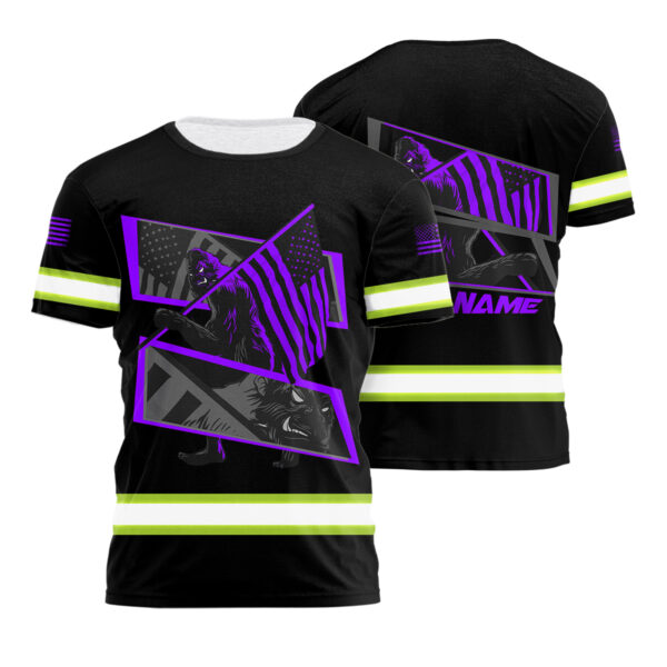 Hi Vis Shirt Reflective Tapes Violet Neon Outdoor Gorillas US Flag Custom Name Safety Workwear For Workers, Operator, Cyclists, Patriotic quantity