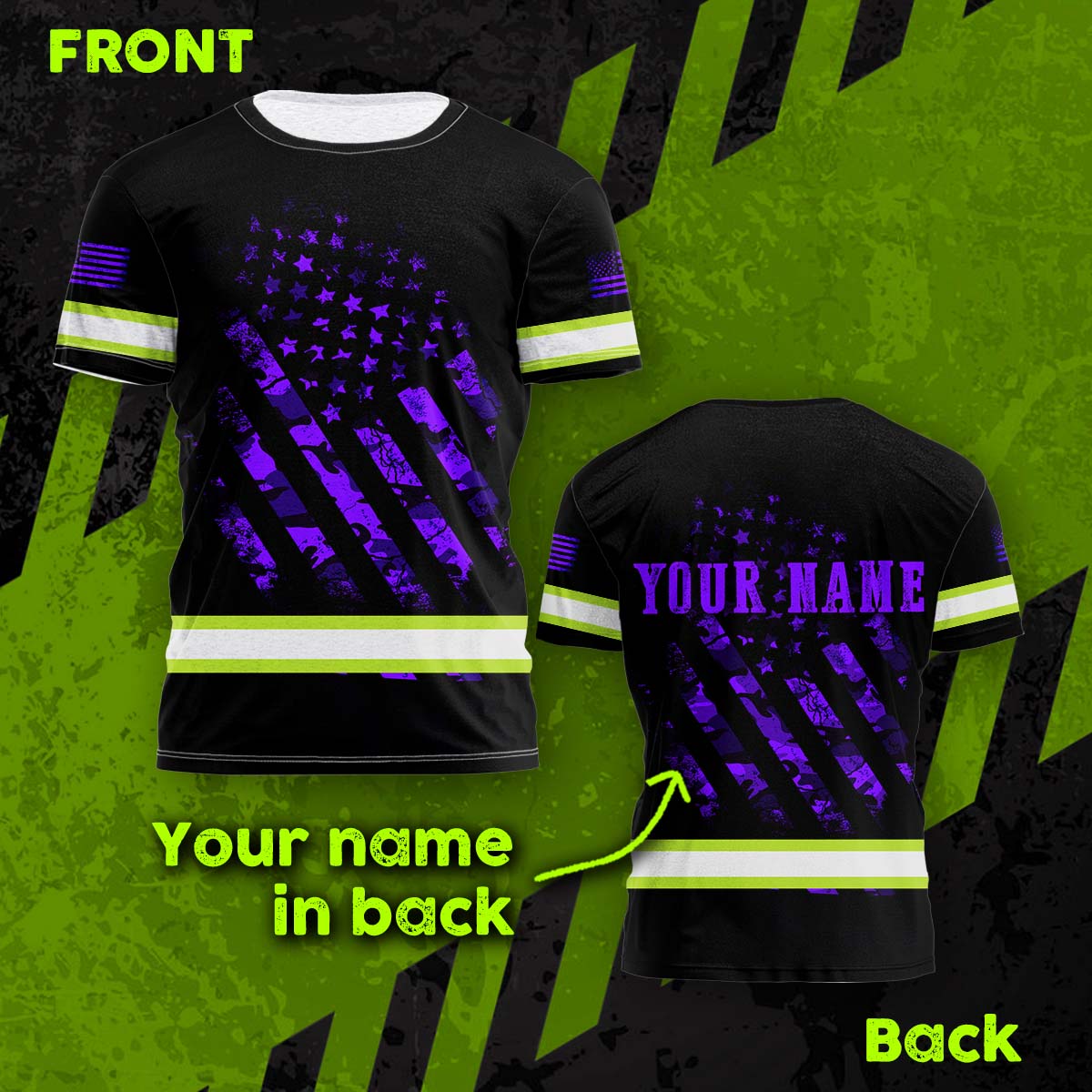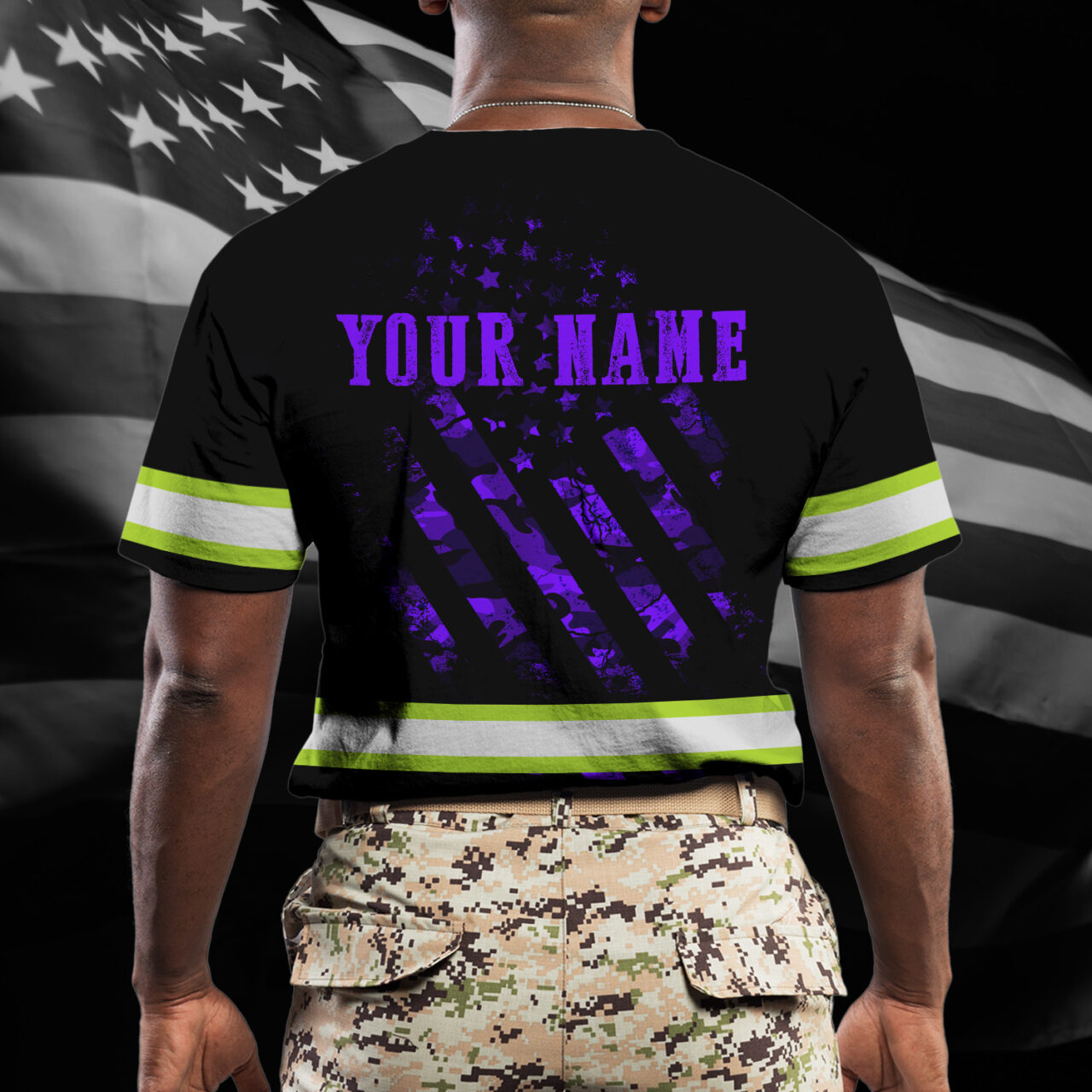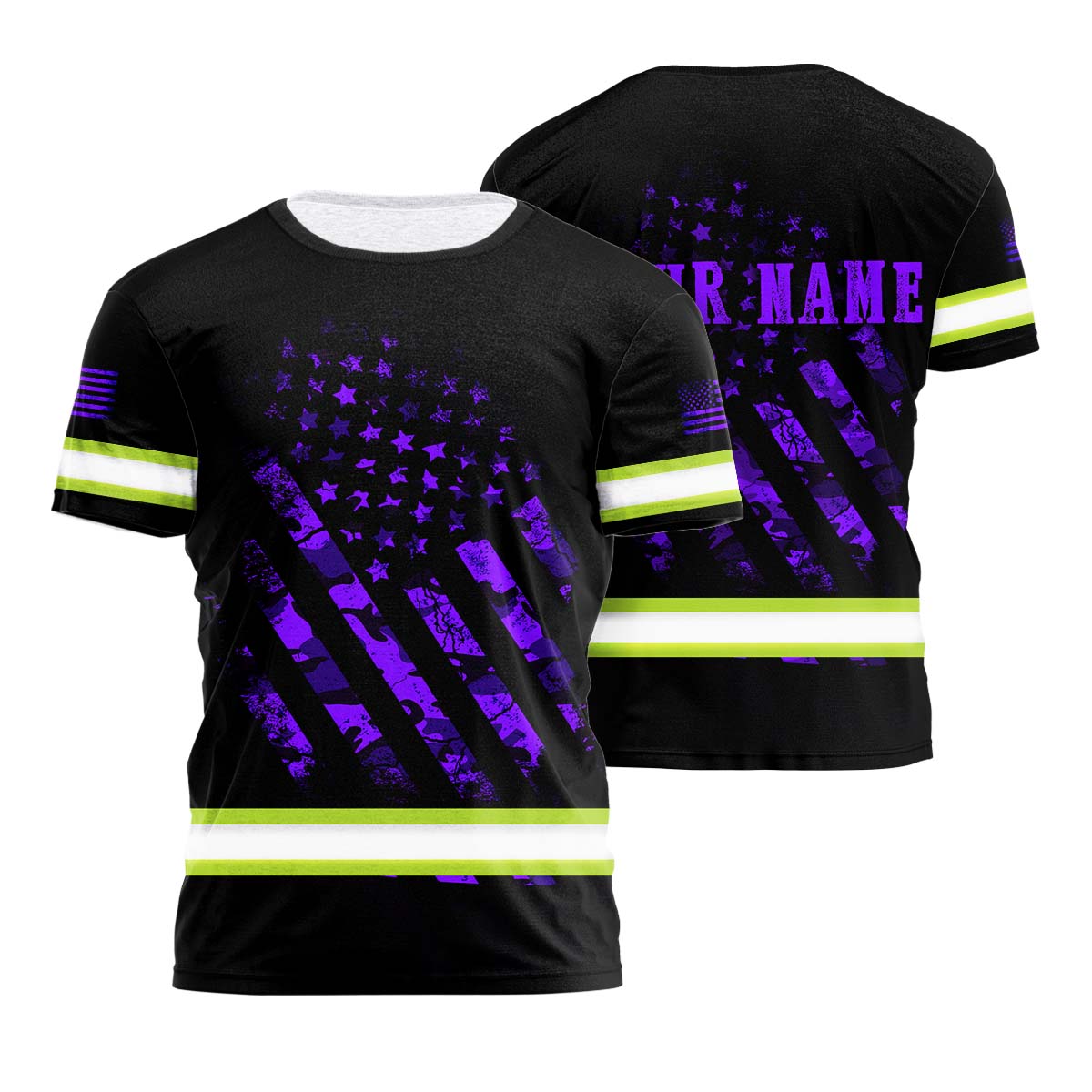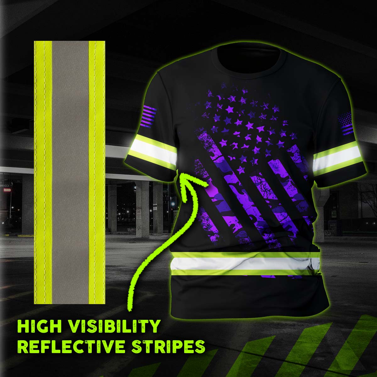 Hi Vis Shirt Reflective Tapes Violet Neon US Flag Camo Custom Name