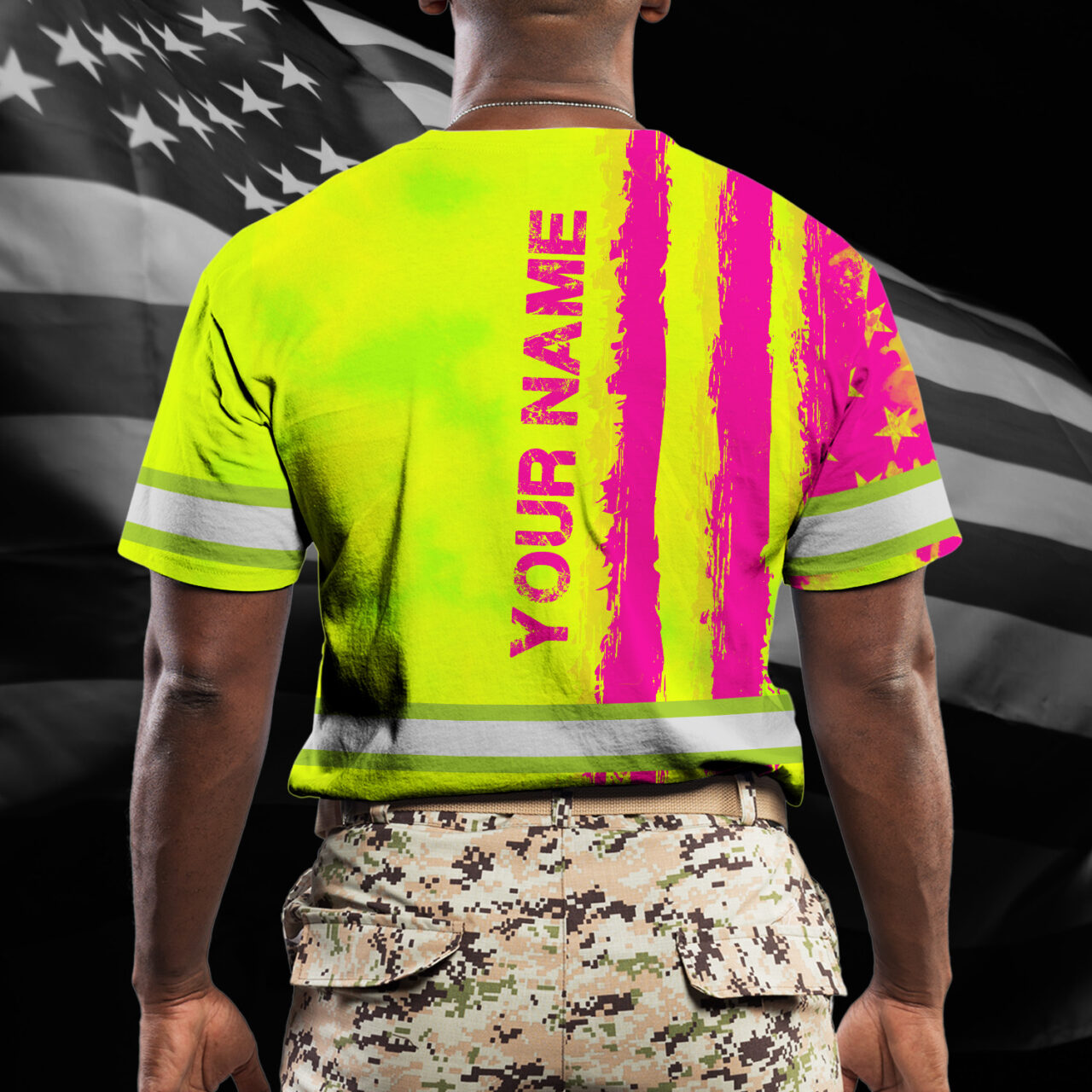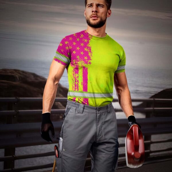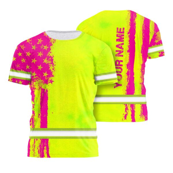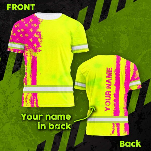 Hi Vis Shirt Reflective Tapes Yellow And Pink Neon US Flag Custom Name