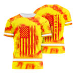 Hi Vis Shirt Reflective Tapes Tie Dye Yellow Red US Flag Custom Name Safety Workwear For Company, Group, Team