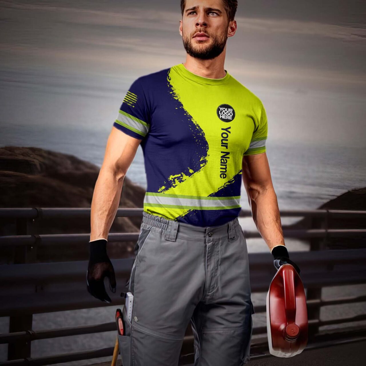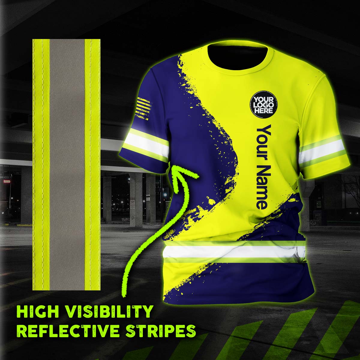 Be the first to review “Hi Vis Shirt Reflective Tapes Yellow Neon And Black Uniform US Flag Custom Name And Logo Safety Workwear For Team, Group, Company”