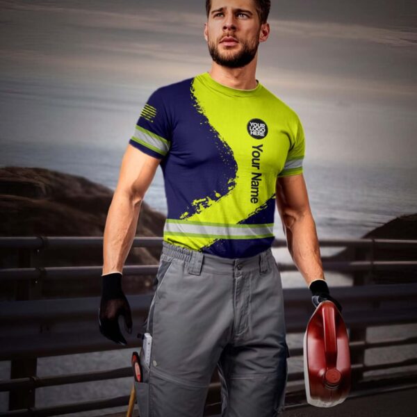 Hi Vis Shirt Uniform Reflective Black Wave Green Neon Custom Name And Logo Safety Workwear