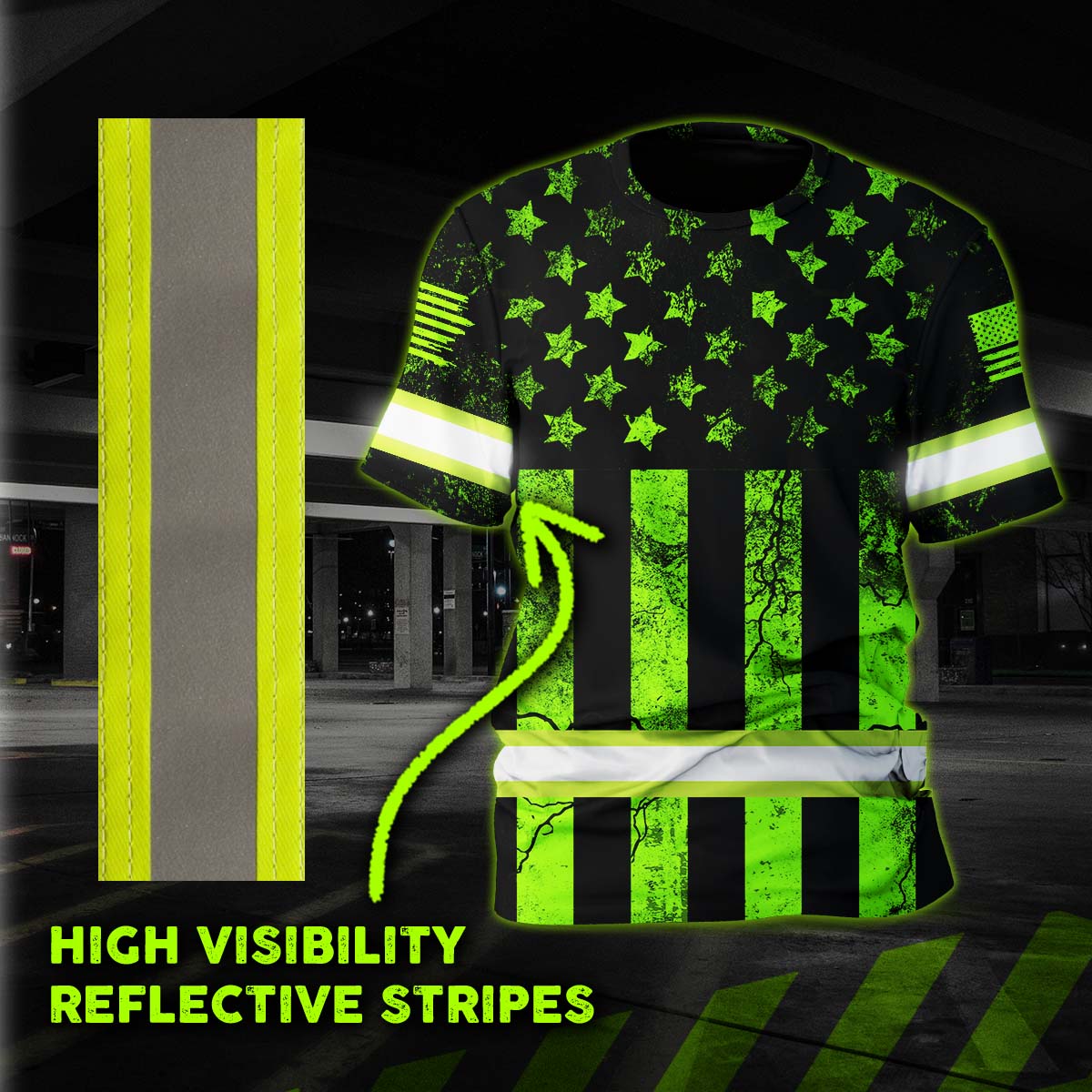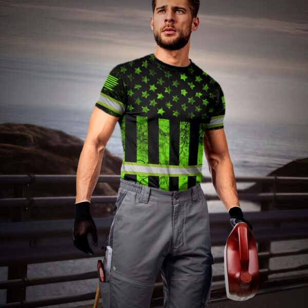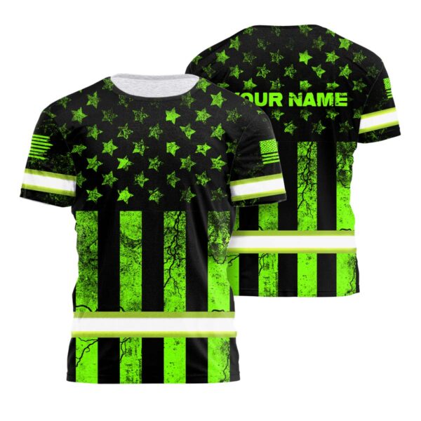 Hi Vis Shirt Reflective Camo Green Scratch USA Flag Custom Name Safety