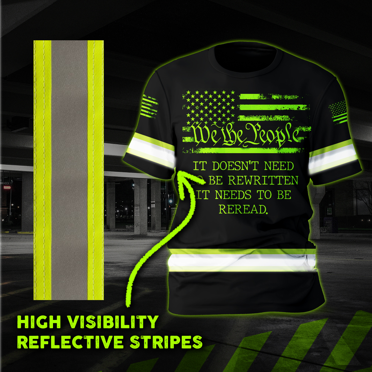 Hi Vis Shirt Reflective US Flag Safety Workwear For Workers, Runners, Cyclists, Truckers, Operator, Patriotic