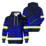 Hi Vis Hoodie Reflective Blue Neon Independence USA Flag