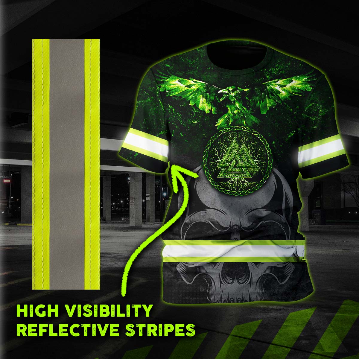 Hi Vis Shirt Reflective Viking Skull Raven Symbol US Flag Custom Name