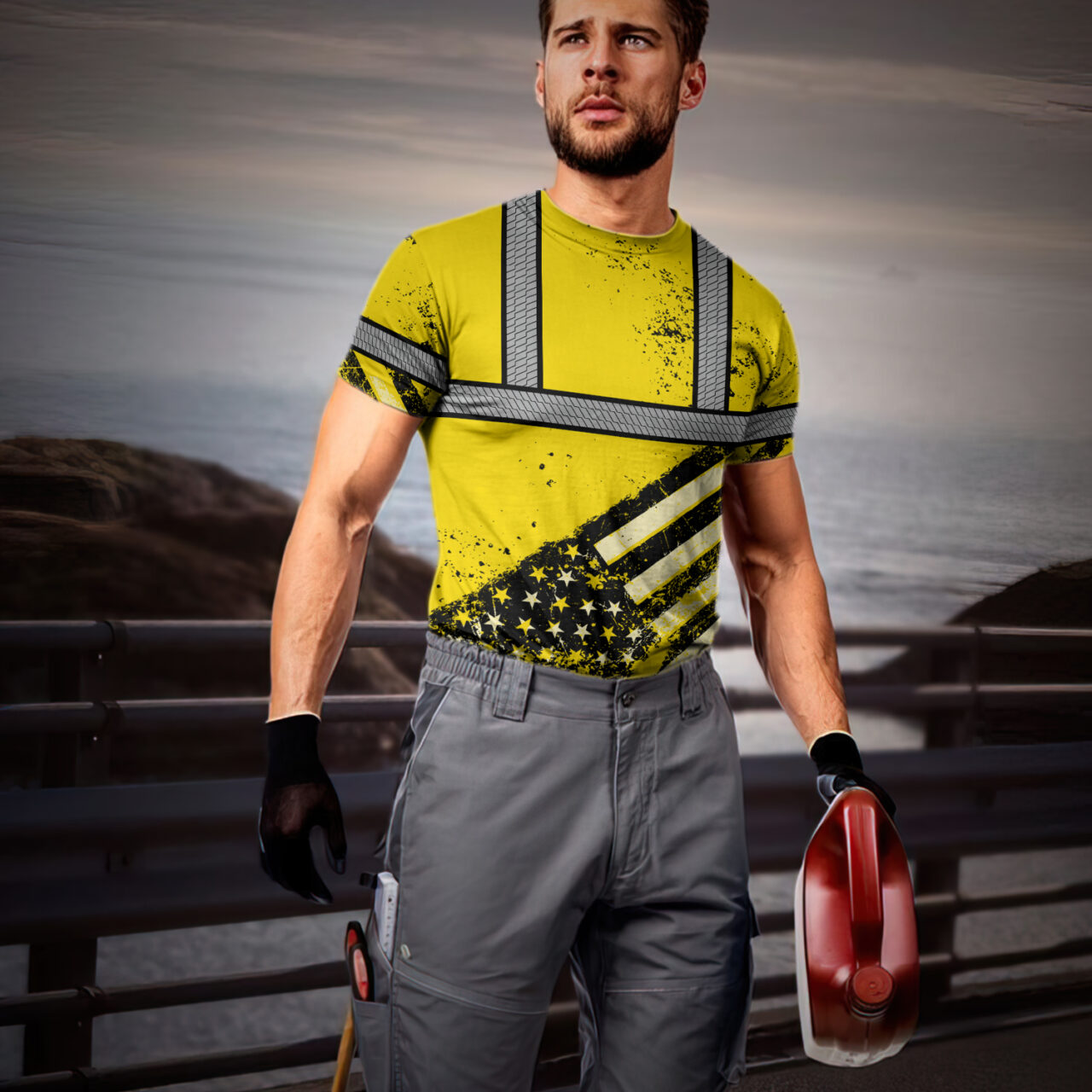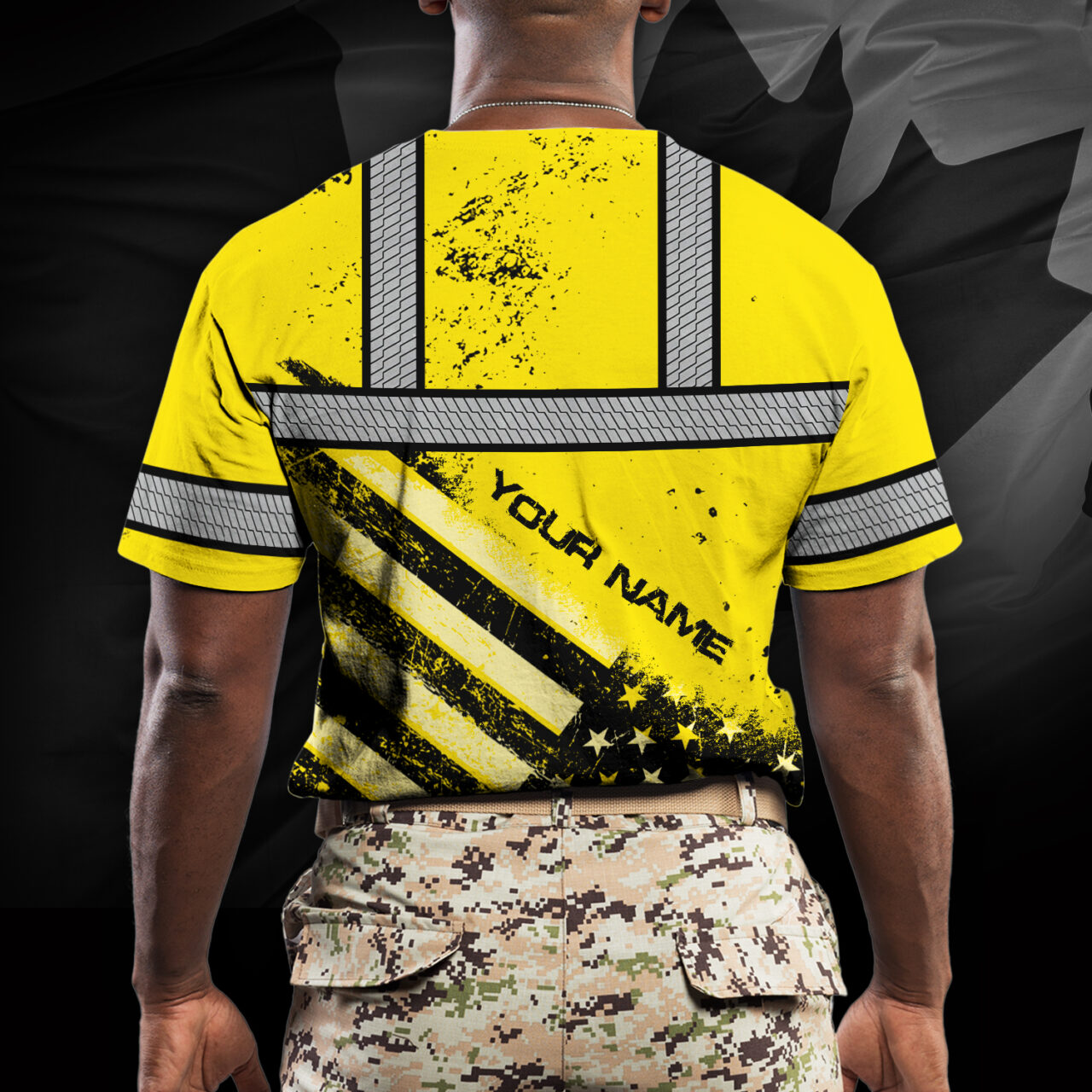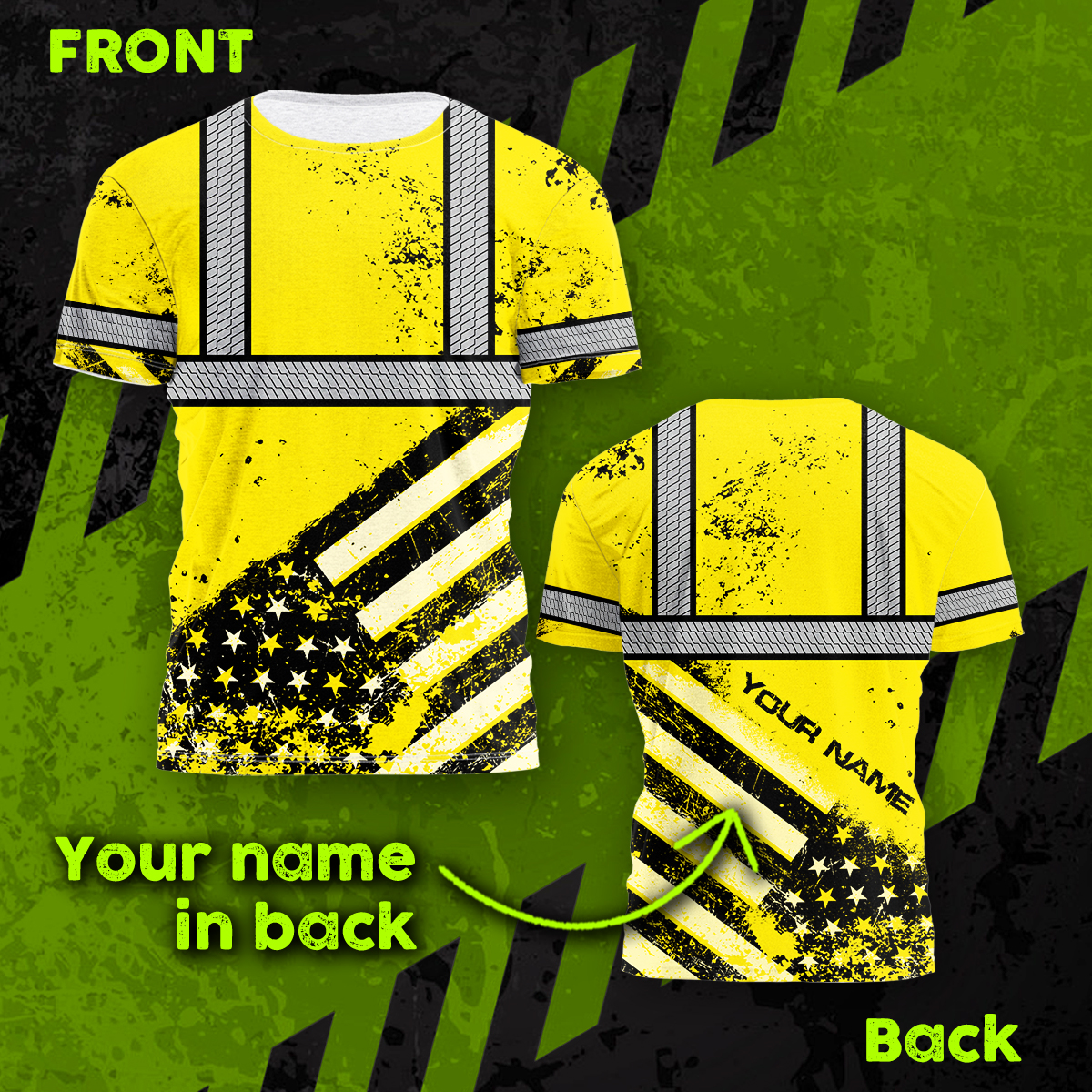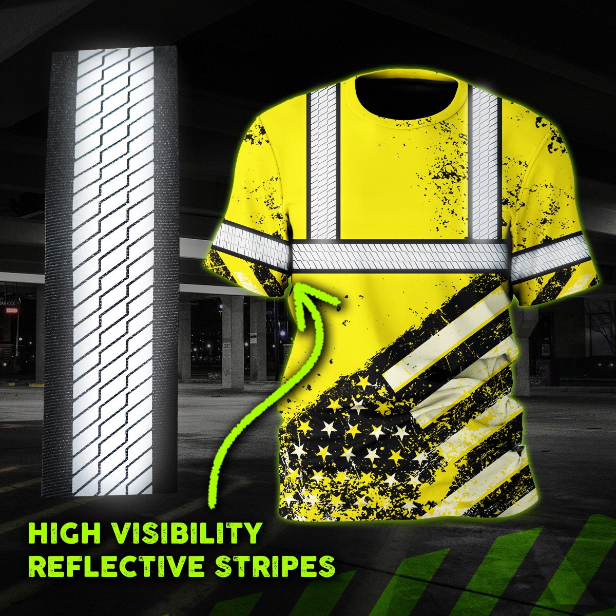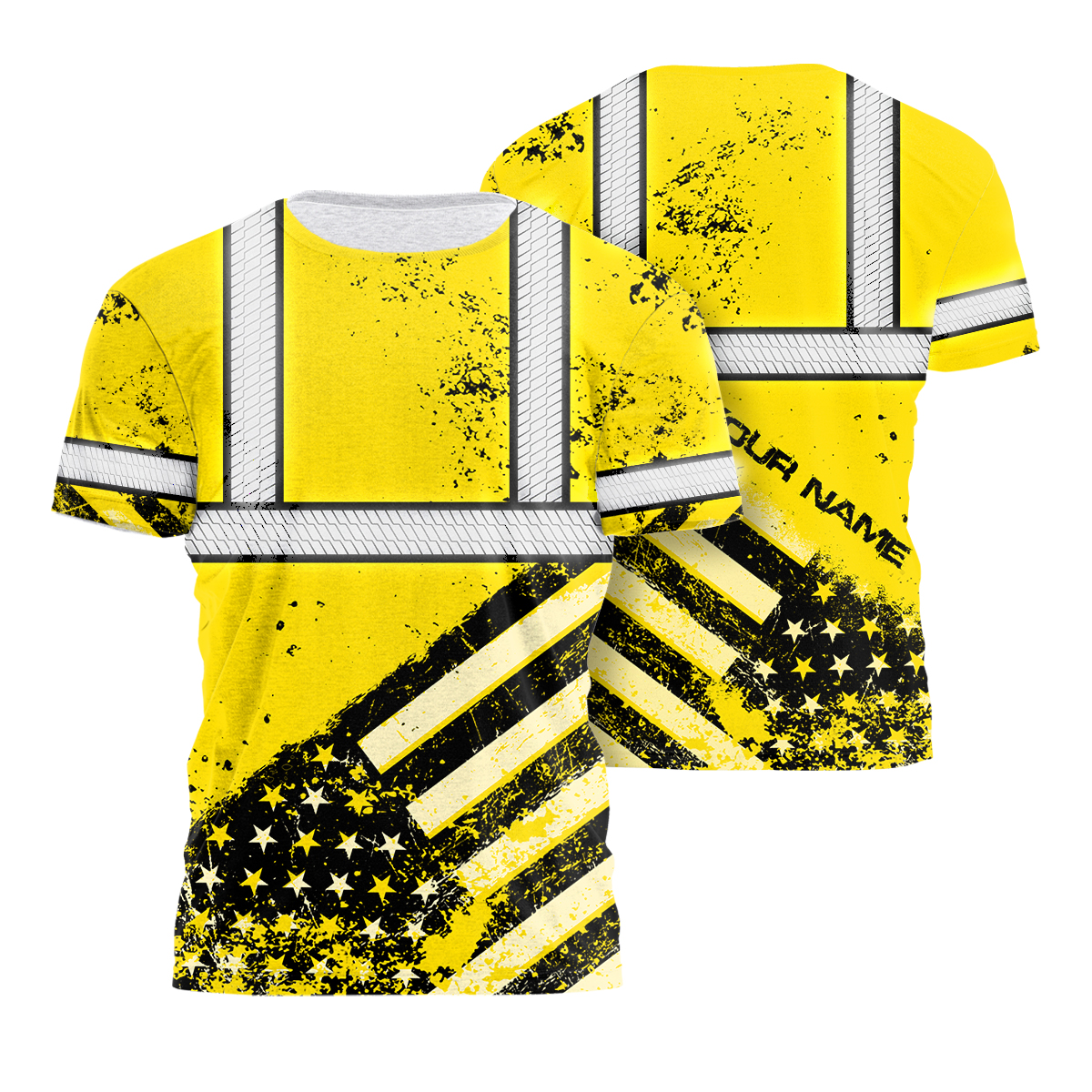 Hi Vis Shirt Reflective Yellow US Flag Paint Safety Workwear For Worker, Motorcycle Bicycle, Runner