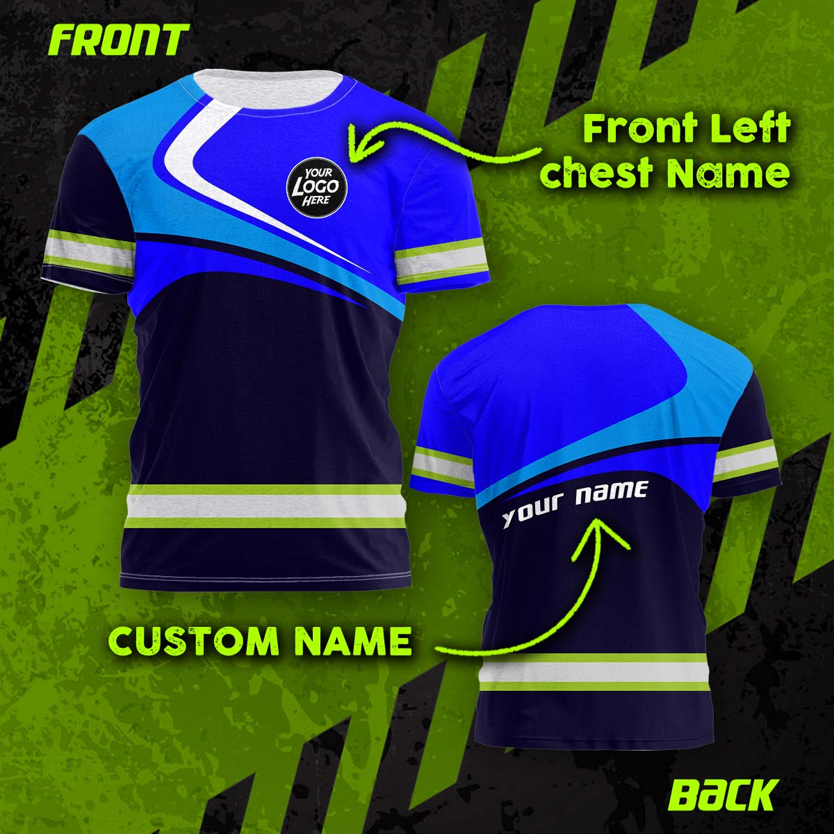 Hi Vis Shirt Uniform Reflective Blue Neon Custom Name And Logo Safety Workwear For Company, Group, Team Description