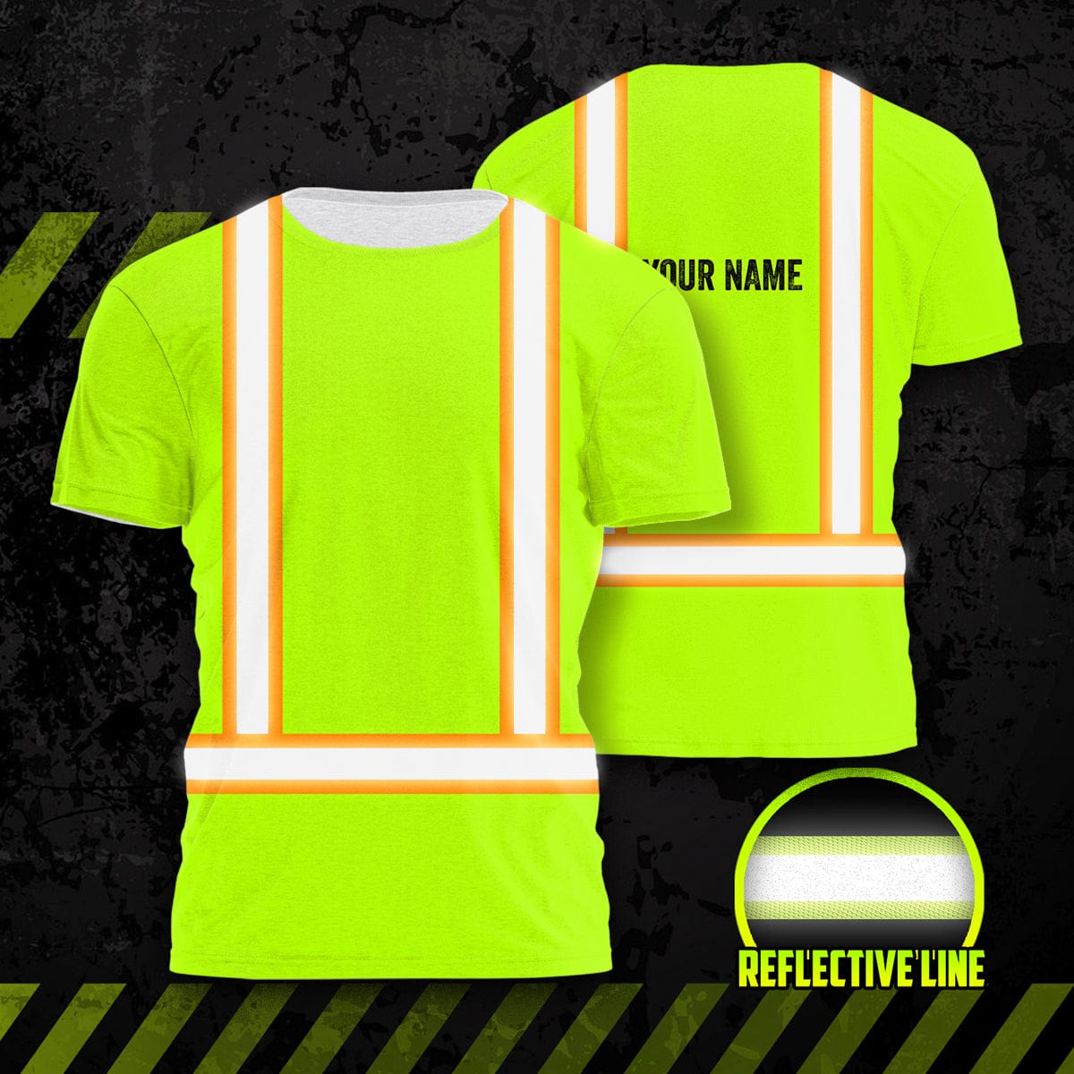 Hi Vis Shirts Reflective Green Orange Line Custom Name Safety Workwear Description