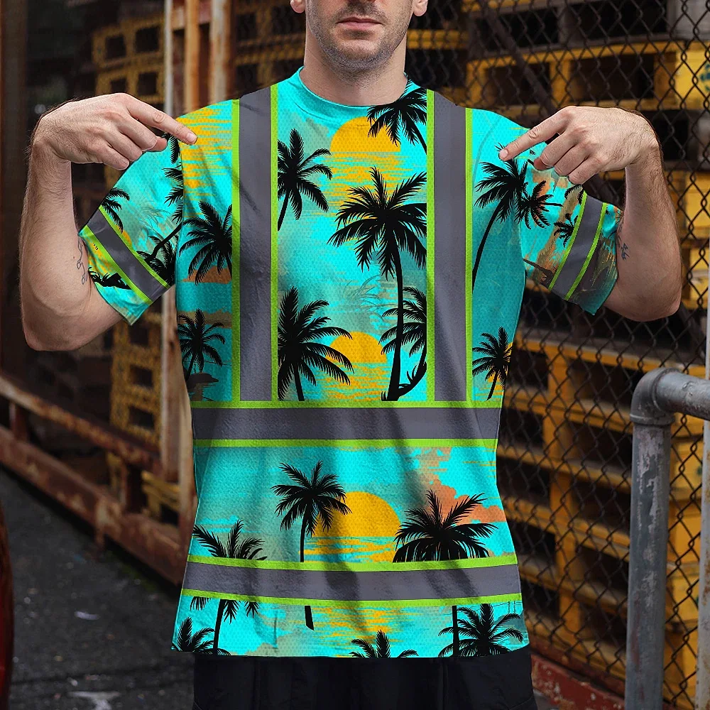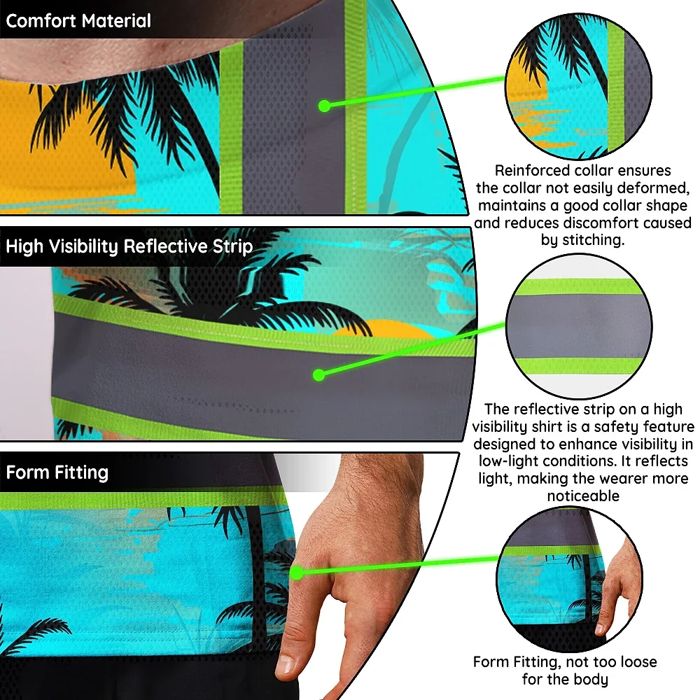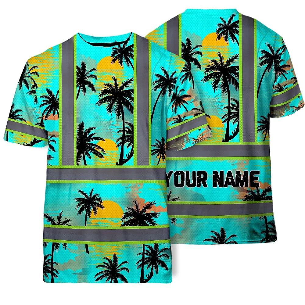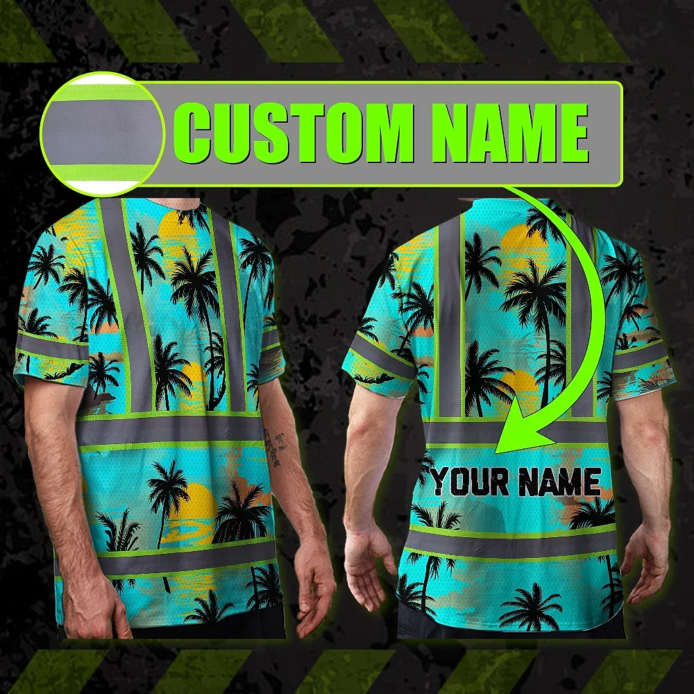 Hi Vis T Shirt Reflective Tapes Blue Neon Flowers Custom Name