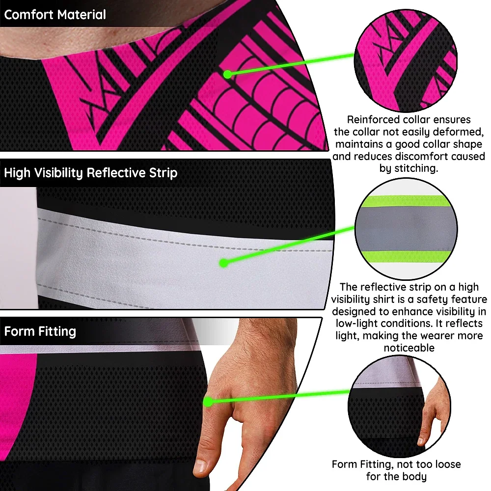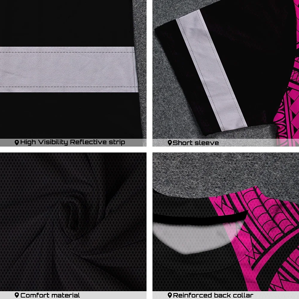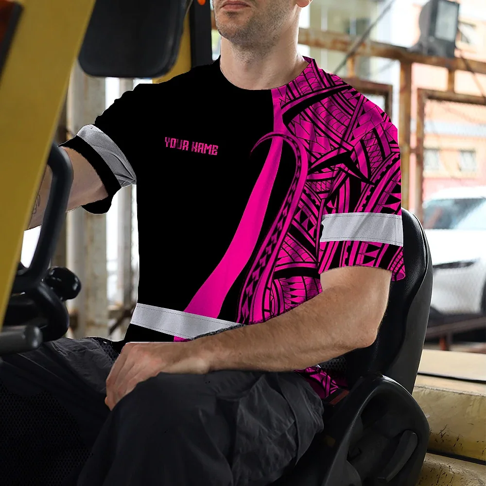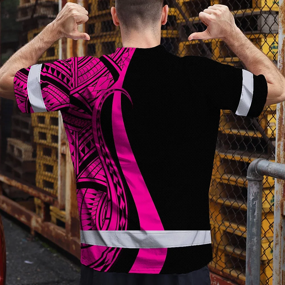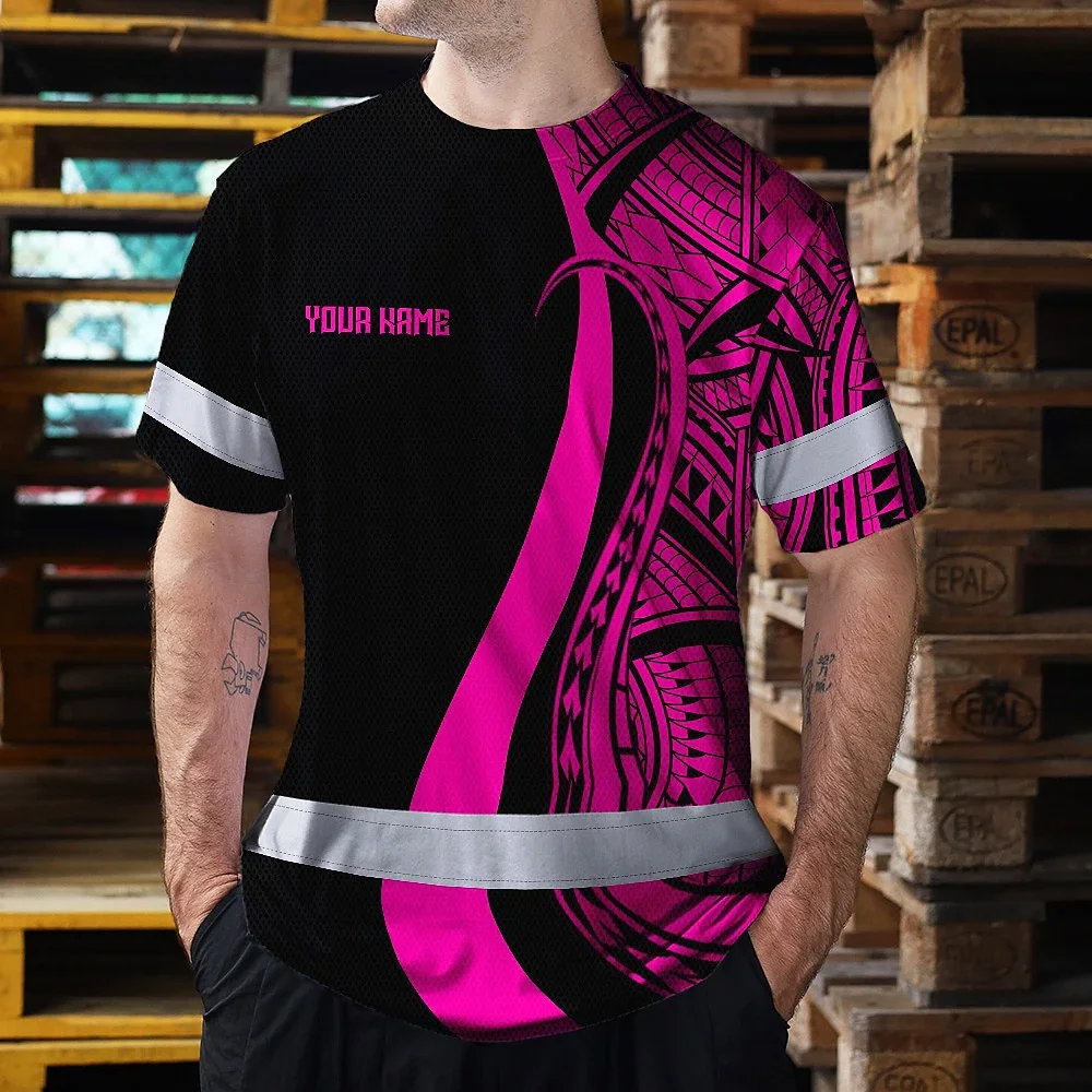 Hi Vis T Shirt Reflective Tapes Pink Neon Hawaii Custom Name Safety Workwear For Workers, Truckers, Operators