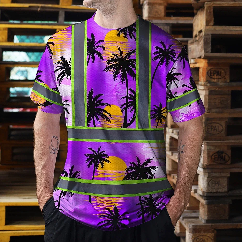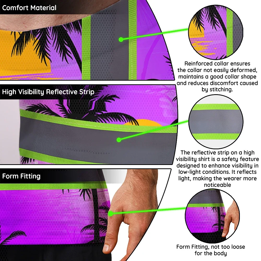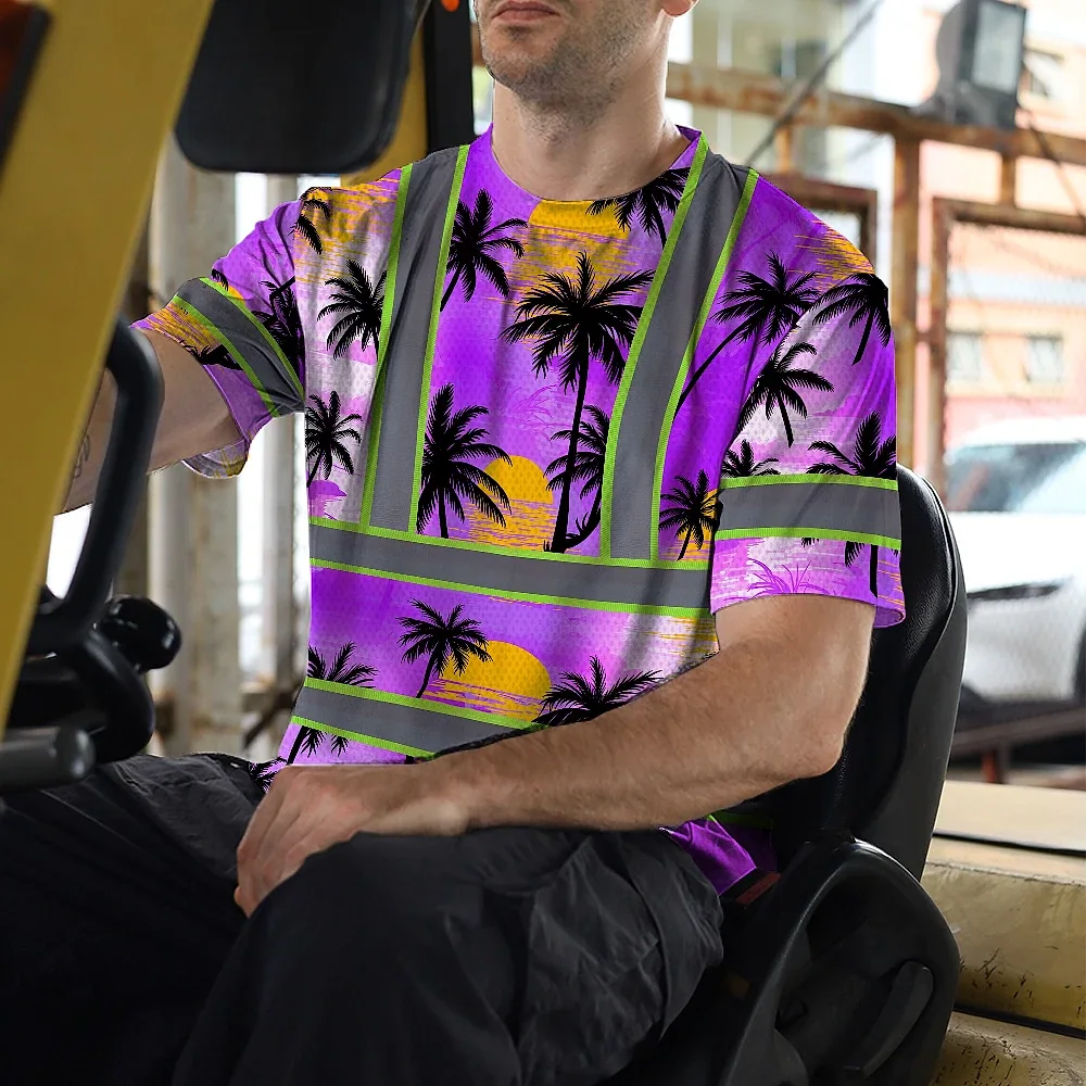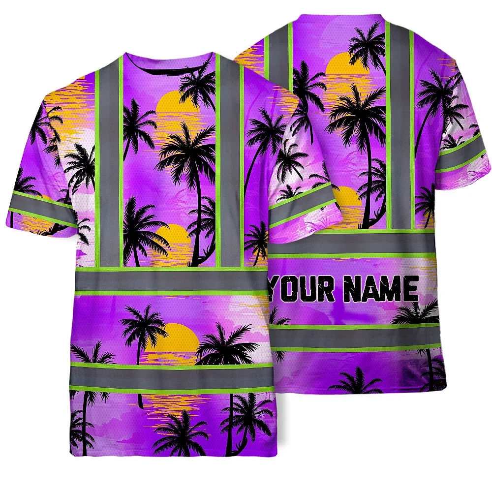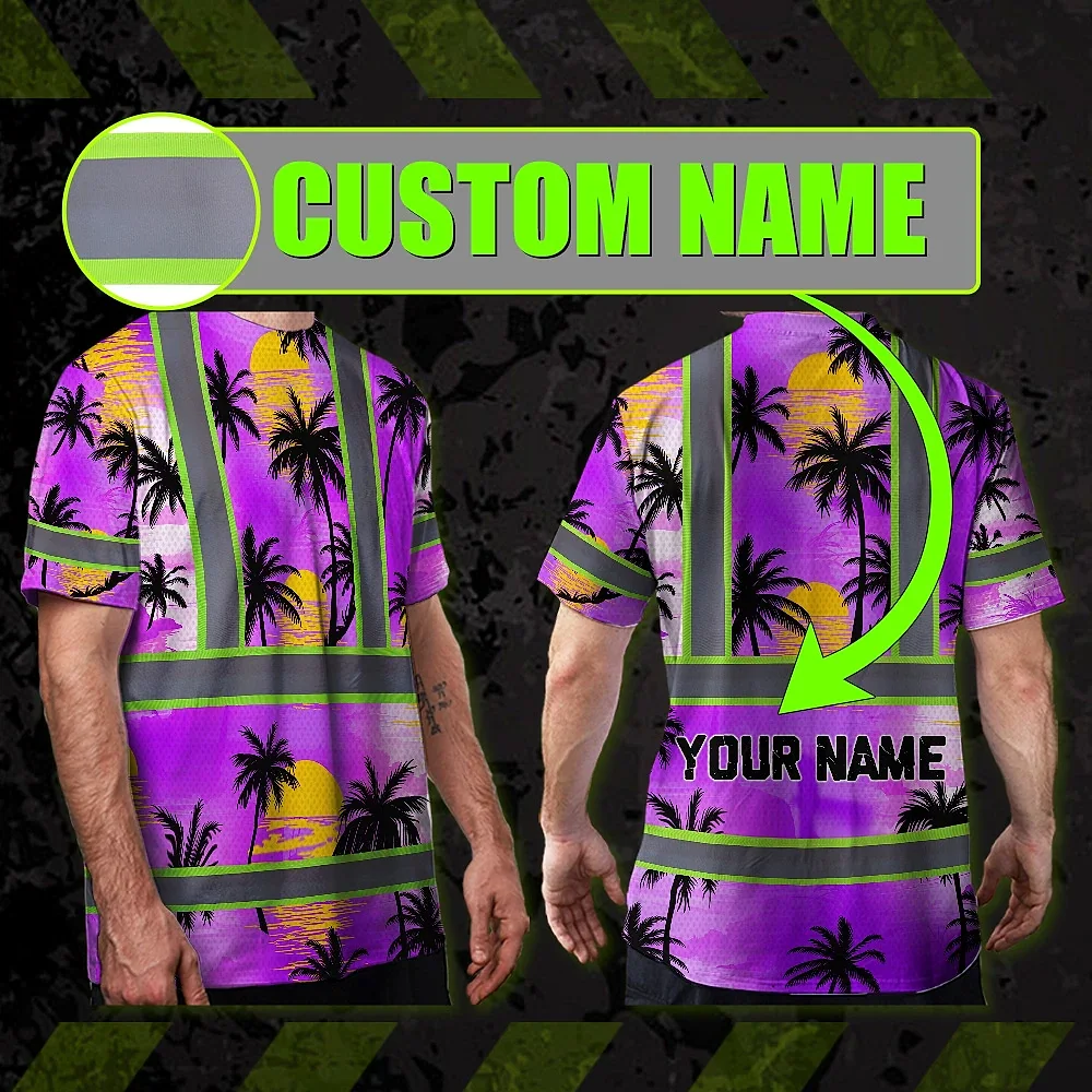 Hi Vis T Shirt Reflective Tapes Violet Neon Flowers Custom Name