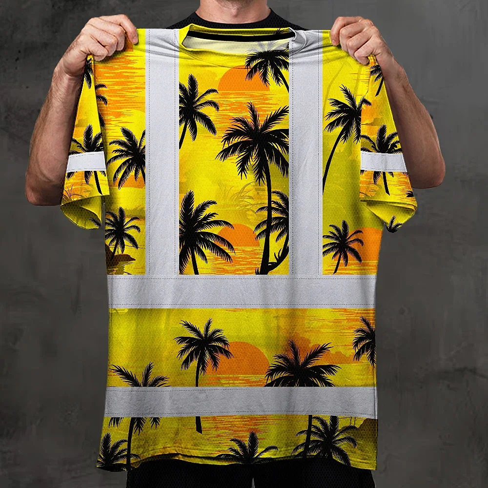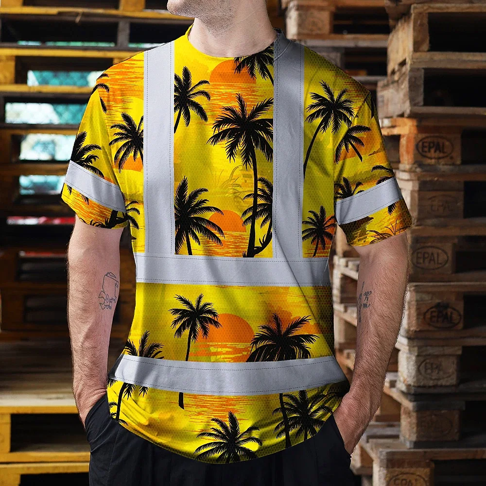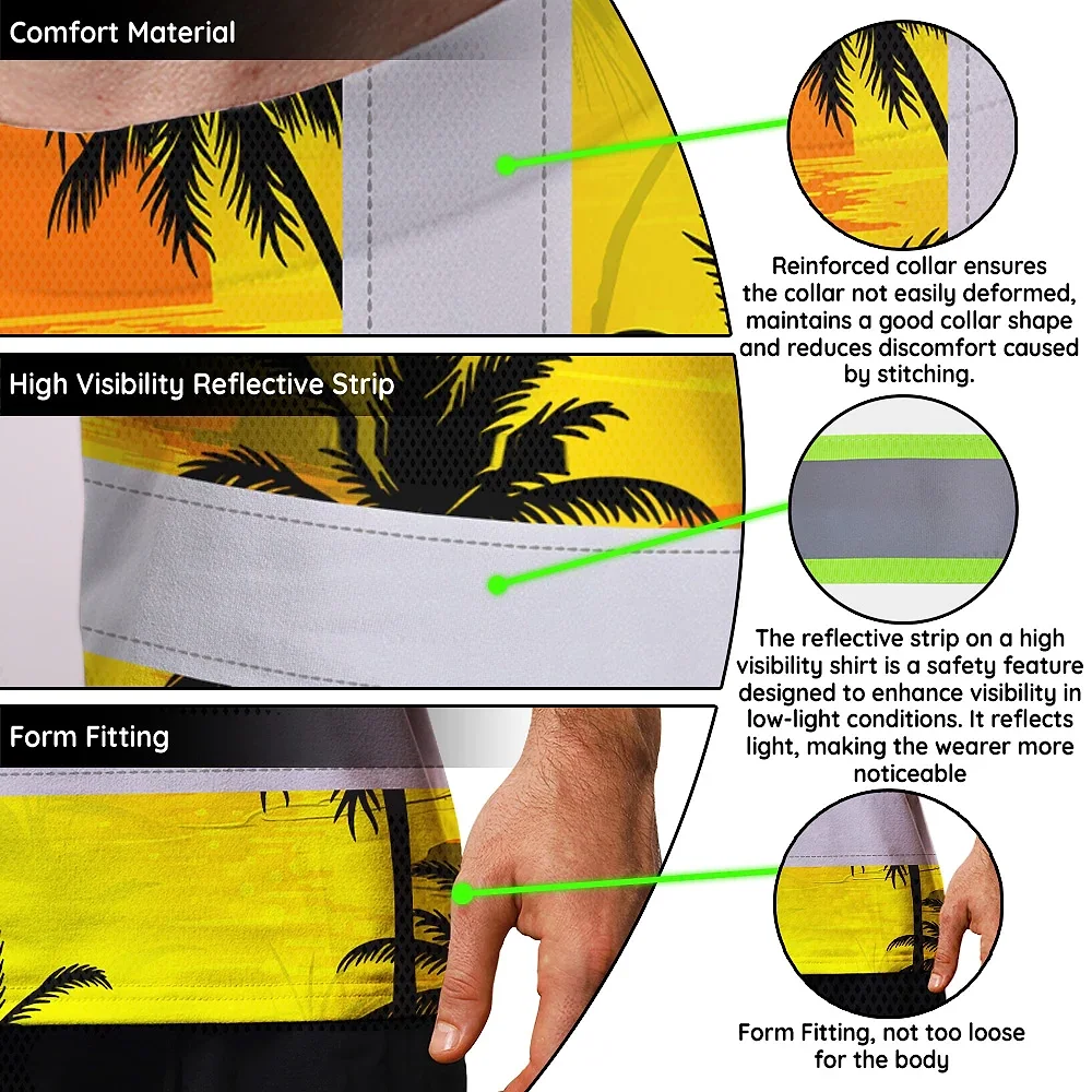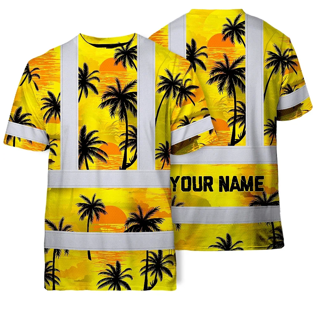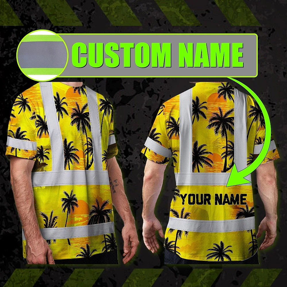 Hi Vis T Shirt Reflective Tapes Yellow Neon Flowers Custom Name Safety Workwear Workers, Truckers, Operators