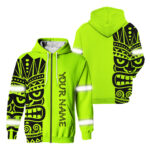 Hi Vis Zip Hoodie Reflective Tapes TiKi Hawaiian Polynesian Tribal Custom Name Safety Workwear For Workers, Runners, Cyclists