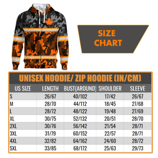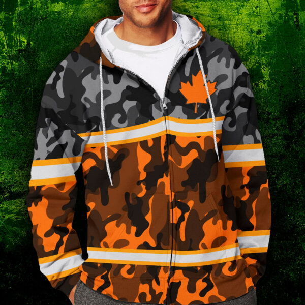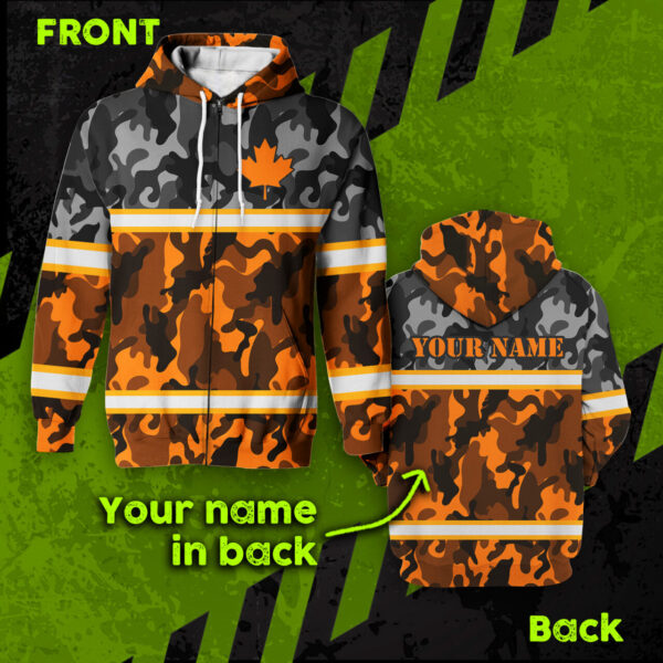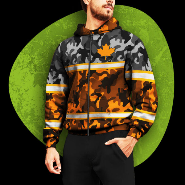 Hi Vis Zip Hoodie Reflective Camo Orange Neon Canada Flag Custom Name Safety Workwear For Workers, Runners, Cyclists, Patriotic