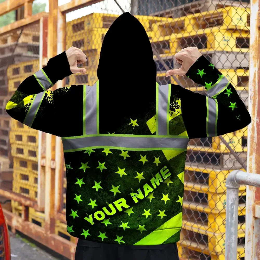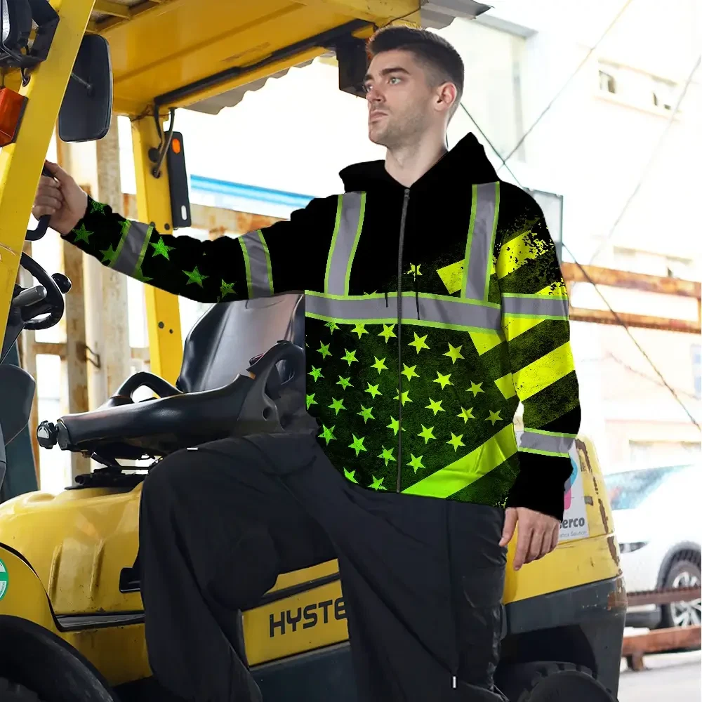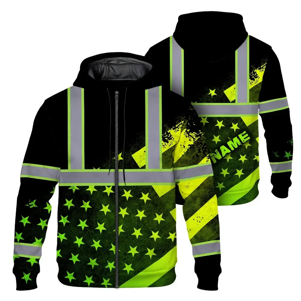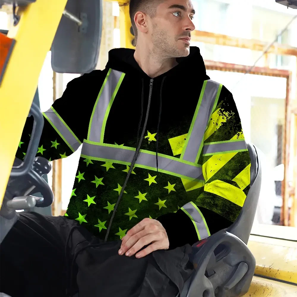 Hi Vis Zip Hoodie Reflective Gradient USA Flag Custom Name Safety Workwear