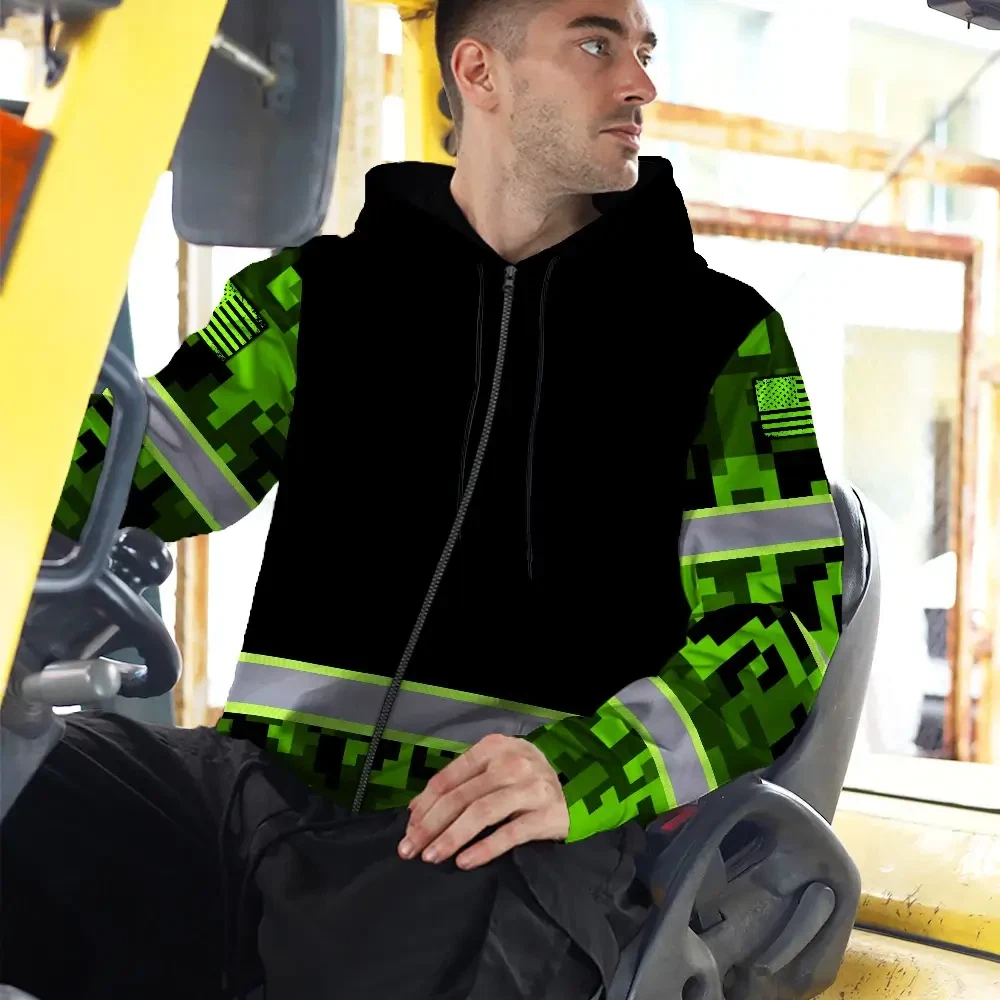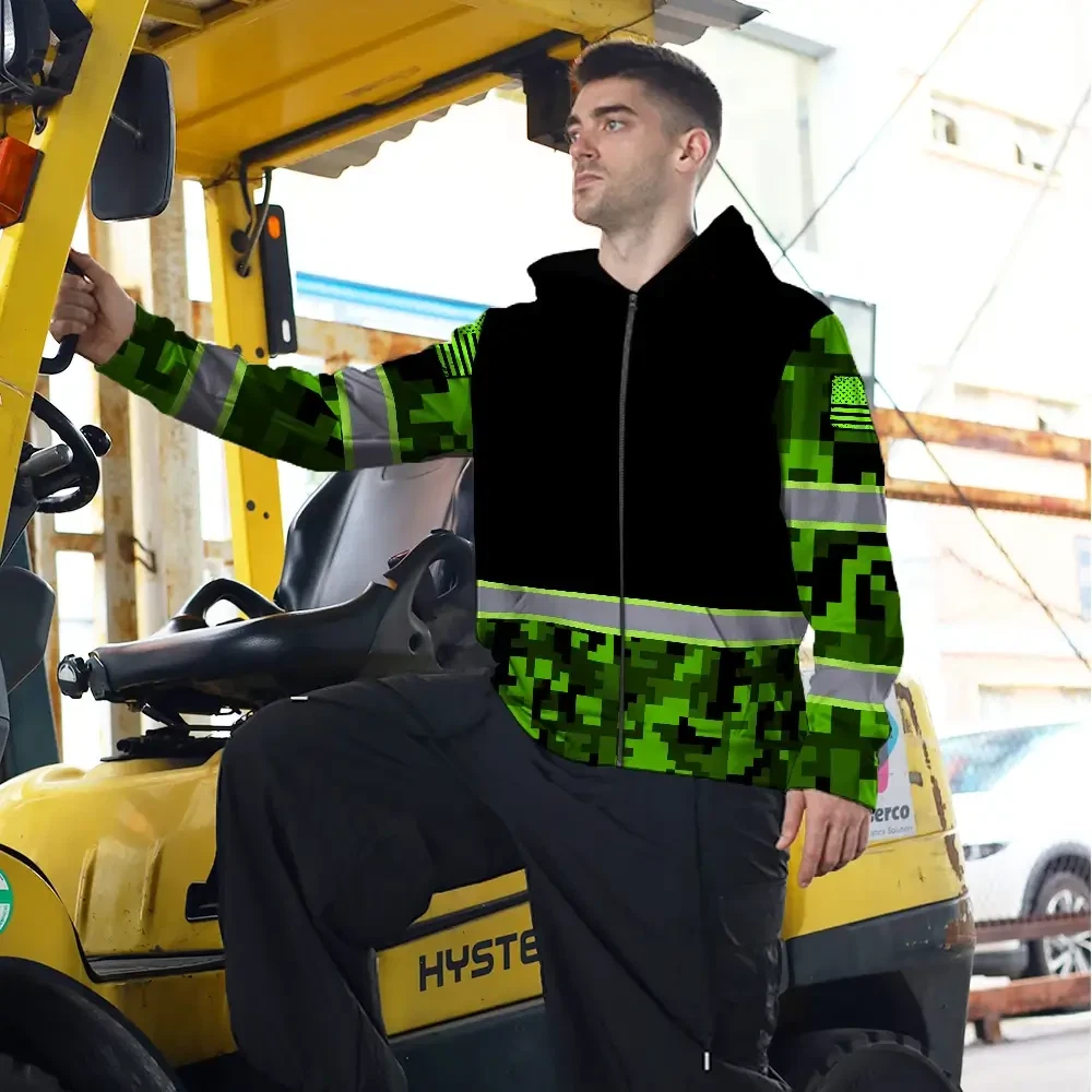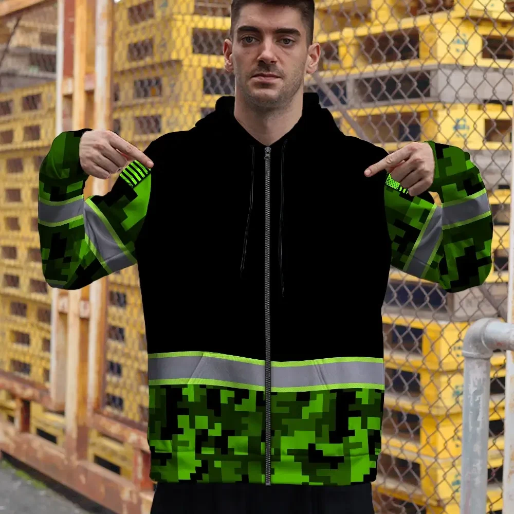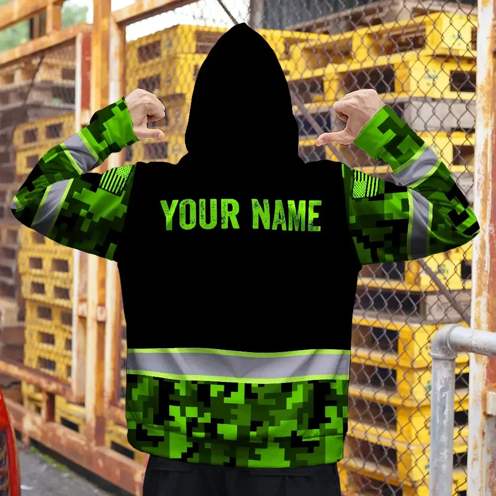 Hi Vis Zip Hoodie Reflective Green Camo Custom Name Safety Workwear