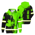 Hi Vis Zip Hoodie Reflective Green Neon Scratch Canada Flag Custom Name Safety Workwear For Workers, Runners, Cyclists, Patriotic