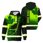 Hi Vis Zip Hoodie Reflective Green Neon Canada Fishing Custom Name Safety Workwear For Workers, Runners, Cyclists, Patriotic