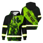 High Visibility Zip Hoodie Reflective Black Green Custom Name Safety Workwear