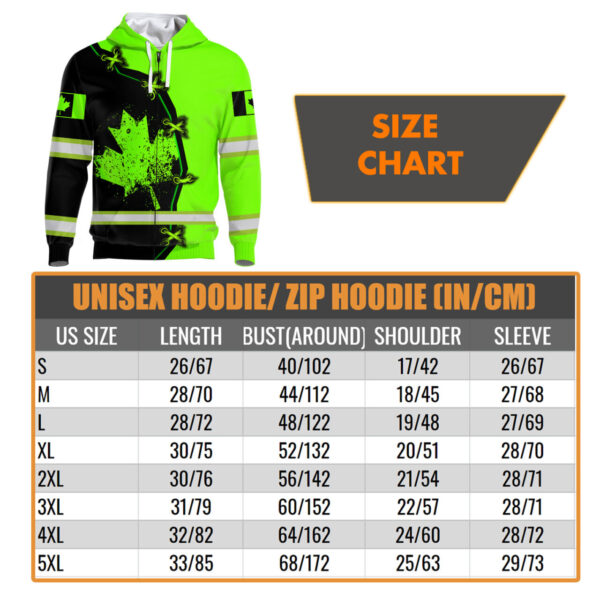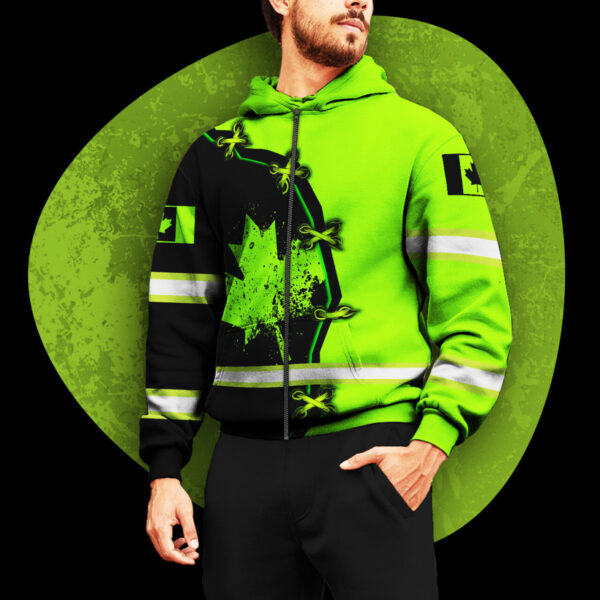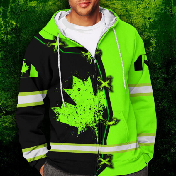 Hi Vis Zip Hoodie Reflective Green Neon Scratch Canada Flag Custom Name Safety Workwear For Workers, Runners, Cyclists, Patriotic quantity