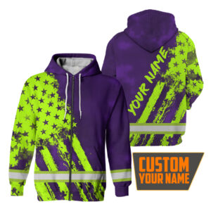 Hi Vis Zip Hoodie Reflective Tapes Green Violet Flag Custom Name