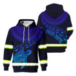 Hi Vis Zip Hoodie Reflective Blue Neon Gradient Hawaii Turtle Custom Name Safety Workwear For Workers, Runners, Cyclists, Patriotic