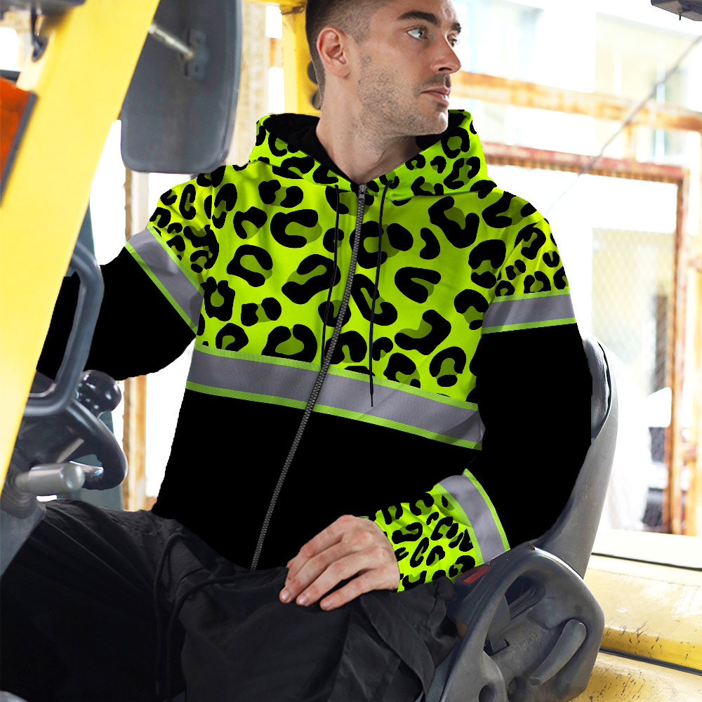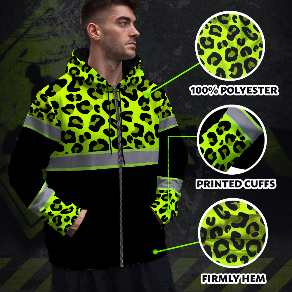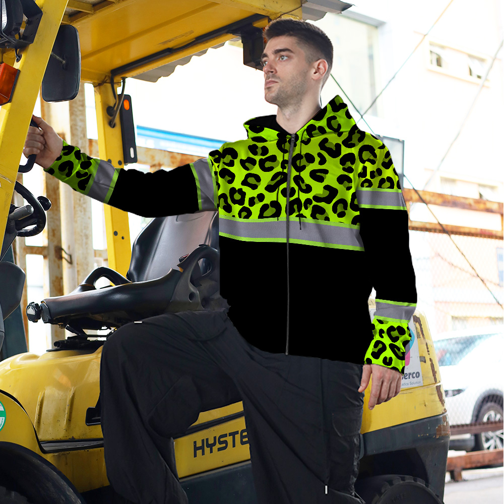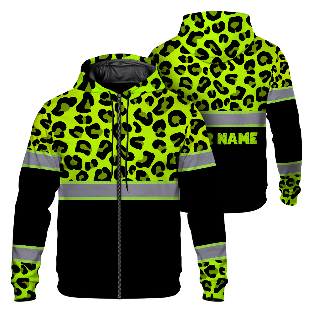 Hi Vis Zip Hoodie Reflective Leopard Custom Name Safety Workwear