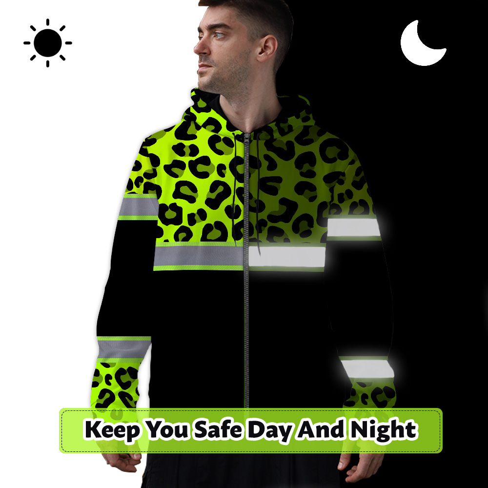 Hi Vis Zip Hoodie Reflective Leopard Custom Name Safety Workwear Key Features