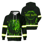 Hi Vis Zip Hoodie Reflective Green Neon Skull Native Custom Name Safety Workwear For Workers, Runners, Cyclists, Patriotic