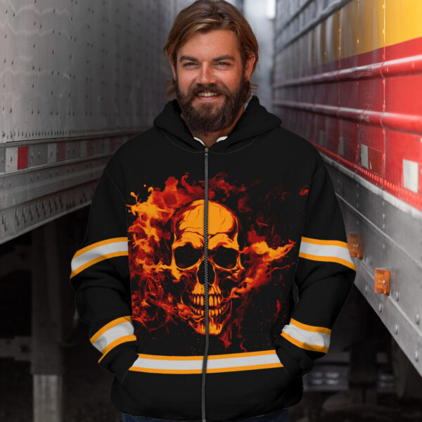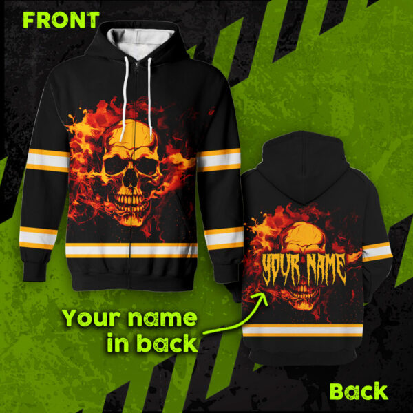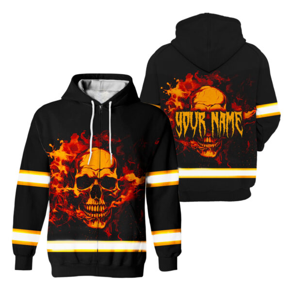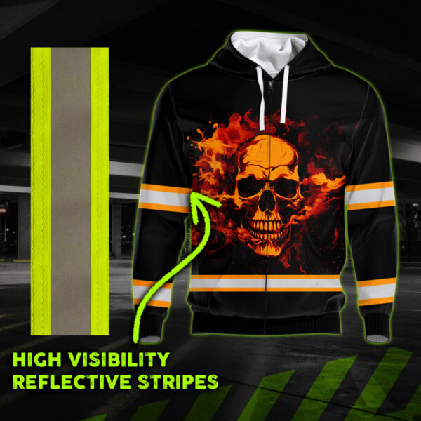 Hi Vis Zip Hoodie Reflective Orange Neon Smoke Skull Custom Name Safety Workwear For Workers, Runners, Cyclists, Patriotic quantity