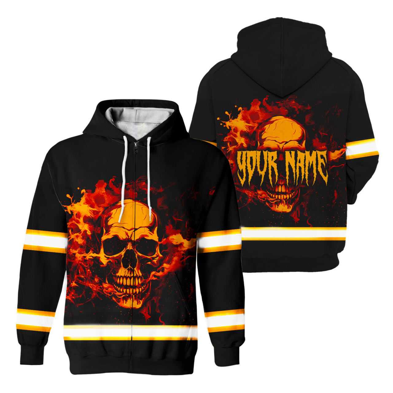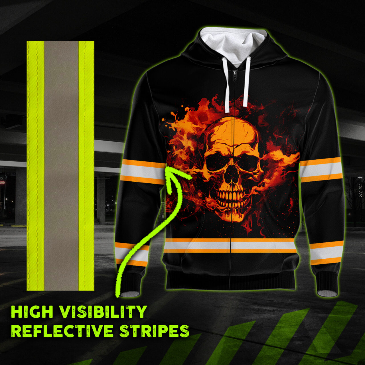Hi Vis Zip Hoodie Reflective Orange Neon Smoke Skull Custom Name Safety Workwear For Workers, Runners, Cyclists, Patriotic